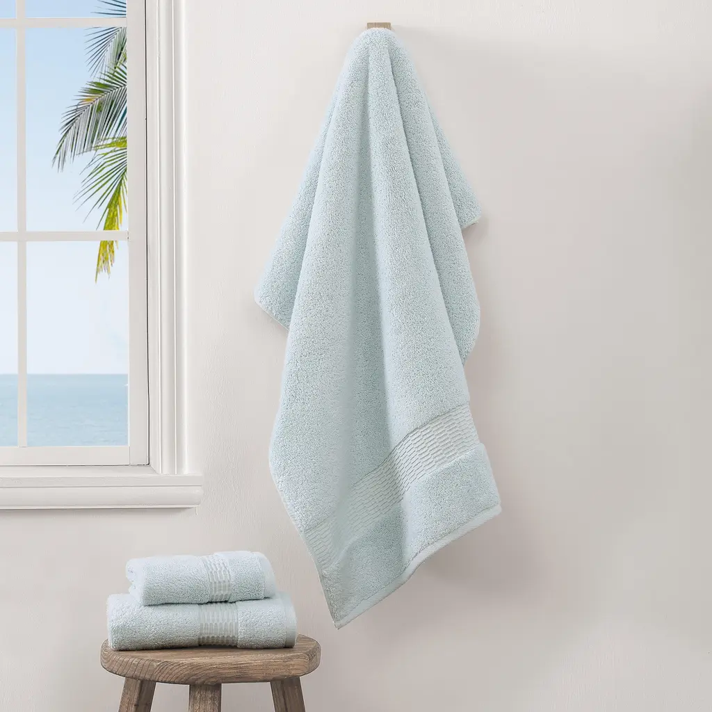 Wrap yourself in comfort with the Tommy Bahama Long Branch 3 Piece Towel Set. The Long Branch bath towels are constructed from 100% premium cotton fibers. The cotton fabrication ensures durability and long-lasting color, making it a perfect addition to any bathroom. Available in a variety of soothing colors white, light pastel blue, natural linen, and sage green, this versatile rug complements a range of bathroom styles. For added convenience, the bath towels are machine washable, ensuring easy care.
