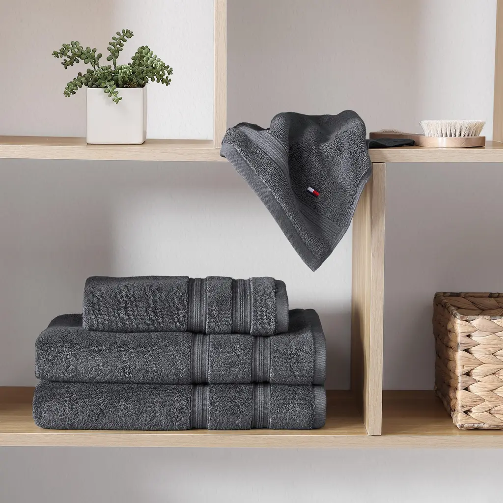 Tommy Hilfiger Harborside Solid Cotton 6 Piece Towel Set - 6 Piece - Charcoal Grey