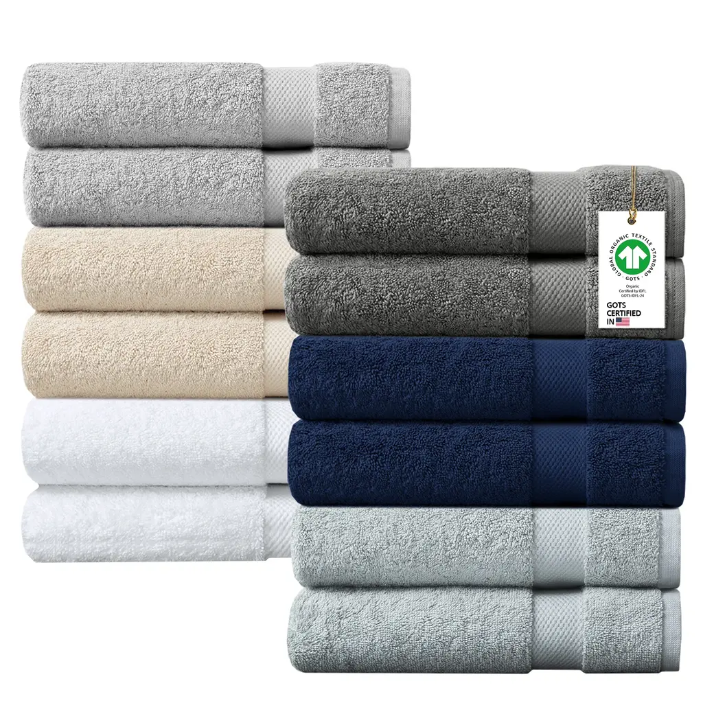 【Product Features】 ★100% Aegean Turkish Cotton ★Oeko-Tex Certified, includes no harmful substances or chemicals ★DuPont Silvadur anti-microbial treatment for health and wellness - provides odor control, prevents bacteria buildup, enhances hygiene, and extends product life by keeping linen fresher, longer. ★500gsm weight, super soft and plush while highly absorbent ★Towel is quick dry so it does not weigh down from moisture ★Dobby border finish ★6pc set Includes: 2 Bath (27x52"), 2 Hand (16x30"), 2 Wash (13x13") ★Machine Washable for easy care 【Description】 Dry off with the bliss comfort of our 510 Design Aegean 100% Turkish Cotton 6 Piece Towel Set. Made from 100% Turkish cotton, these towels are constructed in 500gsm weight to create a light and soft feel, while absorbent and quick dry at the same time. In addition these towels are also Oeko-Tex certified towel and finished with a safe DuPont Silvadur anti-microbial treatment, which provides odor control, prevents bacteria buildup, enhances hygiene, and keeps linen fresher, longer - providing the best in quality comfort and wellness. Each towel is also finished with a dobby border for a stylish touch and is machine washable for easy care. Set includes: 2 Bath Towels 27"x52", 2 Hand Towels 16"x30", and 2 Wash Towels 13"x13". 【Product Details】 See below 2 Bath Towels:27"W x 52"L(2) 2 Hand Towels:16"W x 30"L(2) 2 Wash Towels:13"W x 13"L(2) 【Material】 100% Aegean Turkish Cotton Solid With Dobby Border 500gsm 【Keep it looking its best】 1.Fabric furniture Care;Dust regularly. Clean gently with a clean, slightly damp cloth. Professional cleaning is recommended. 2.Wood Furniture Care:We recommend dusting frequently with a clean, soft, dry, lint-free cloth. Clean the surface by rubbing in the direction of the grain and wipe dry. 3.Avoid direct sunlight. 4.Avoid the use of all chemicals, household cleaners, abrasives, or cleaners that contain lemon, vinegar, or other acids that may damage the finish. 5.Do not place hot appliances, such as curling irons and hot hair dryers directly on the countertop. 6.Spot clean using distilled water and water-based cleaning agents, foam or mild water-free cleaning solvents. 7.Always test a small inconspicuous area first. 8.Hardware may loosen over time; periodically check to make sure all connections are tight 【Notes】 1.Size Notice:Manual measurement has been used, there may be some reasonable errort, thanks for your understanding. 2.Color Notice:Due to factors such as display equipment and shooting environment, the color of the item may be slightly different from the picture, which is a normal phenomenon, please refer to the actual item 3.Assembly Notice:Please read assemble manual in advance. Please do not over-tighten nuts, as this may cause distortion or breakage. 4.It is recommended to put a layer of foam or soft cushion on the floor when installing to avoid scratching the floor. 5.If the item has any defects, damage or missing parts, please contact us with pictures or videos so that we can understand your needs and help you quickly, and always remember to retain its original packaging to ensure any return requests. We will try our best to solve any problems you may have. 6.If you receive the wrong product, please attach the product picture, the infographic of the outer package and the picture containing SKUs, so that we can verify and quickly deal with it for you