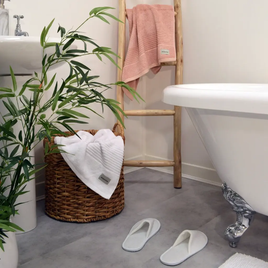 Made from a blend of bamboo and cotton fibres, this pair of bath towels is exquisitely soft and gentle on your skin, providing a spa-like sensation every time you use them.The secret to our premium bamboo cotton towels lies in their zero twist construction, which creates a plush and voluminous texture that feels amazingly soft against your skin. Unlike traditional towels that are made with twisted fibres, our zero twist towels are incredibly absorbent, quickly wicking away moisture to leave you feeling dry and comfy.Crafted from the finest quality materials, our premium bamboo cotton towels are thick and durable, as well as being hypo-allergenic and antibacterial.Specifications:65% cotton 35% bamboo.580gsm.3-4 times more absorbent than 100% cotton.Biodegrabable.