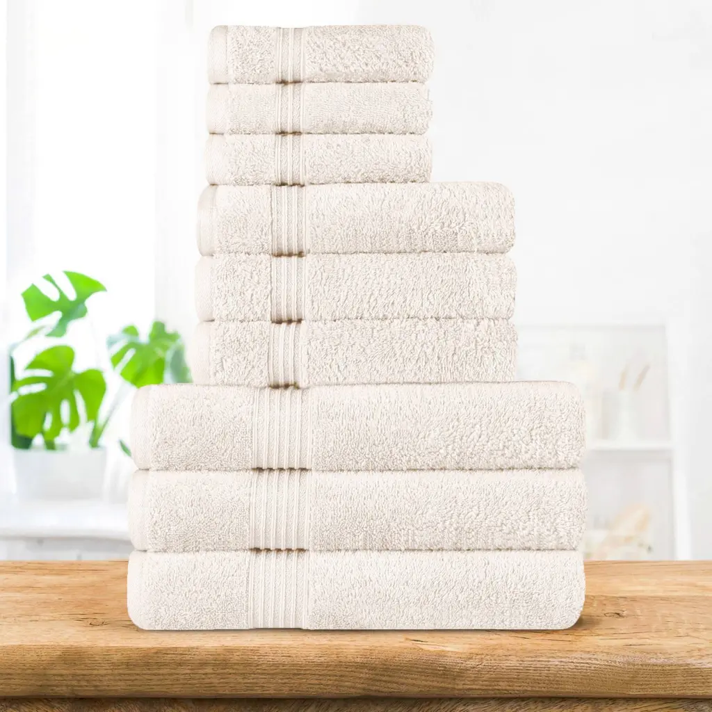 This Cream Cotton Soap Towels Set has a minimalist style that's both smart and useful, perfect for a bunch of uses around your home. At 11.8 x 11.8 in, these versatile towels are fab for the bathroom, kitchen, or home gym, adding a touch of style while keeping things comfy and practical. Breathable Material: These towels are made from 100% cotton fabric, promoting airflow and ensuring they dry quick and stay fresh. You can use them multiple times without a worry, making them perfect for daily chores. Convenient Hanging Loop: Each towel has a handy loop for easy storage and quick access. Just hang them up and they’ll be ready to go when you need them. Fade Resistant: They’re designed to keep their vibrant color and smooth texture, even after lots of washes. So they still look fresh every time. Machine Washable: Care is easy with these towels; simply pop them in the washing machine. The cotton stands up well in the wash without losing shape or color. Multi-Purpose Use: This set of 10 towels can handle a ton of tasks, from face and hand towels to kitchen and gym towels, making them super handy for all your household needs.