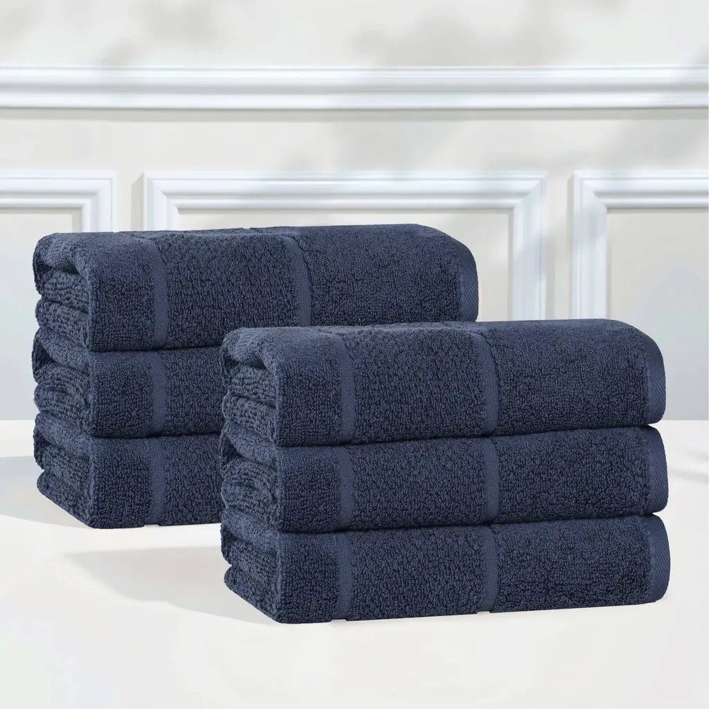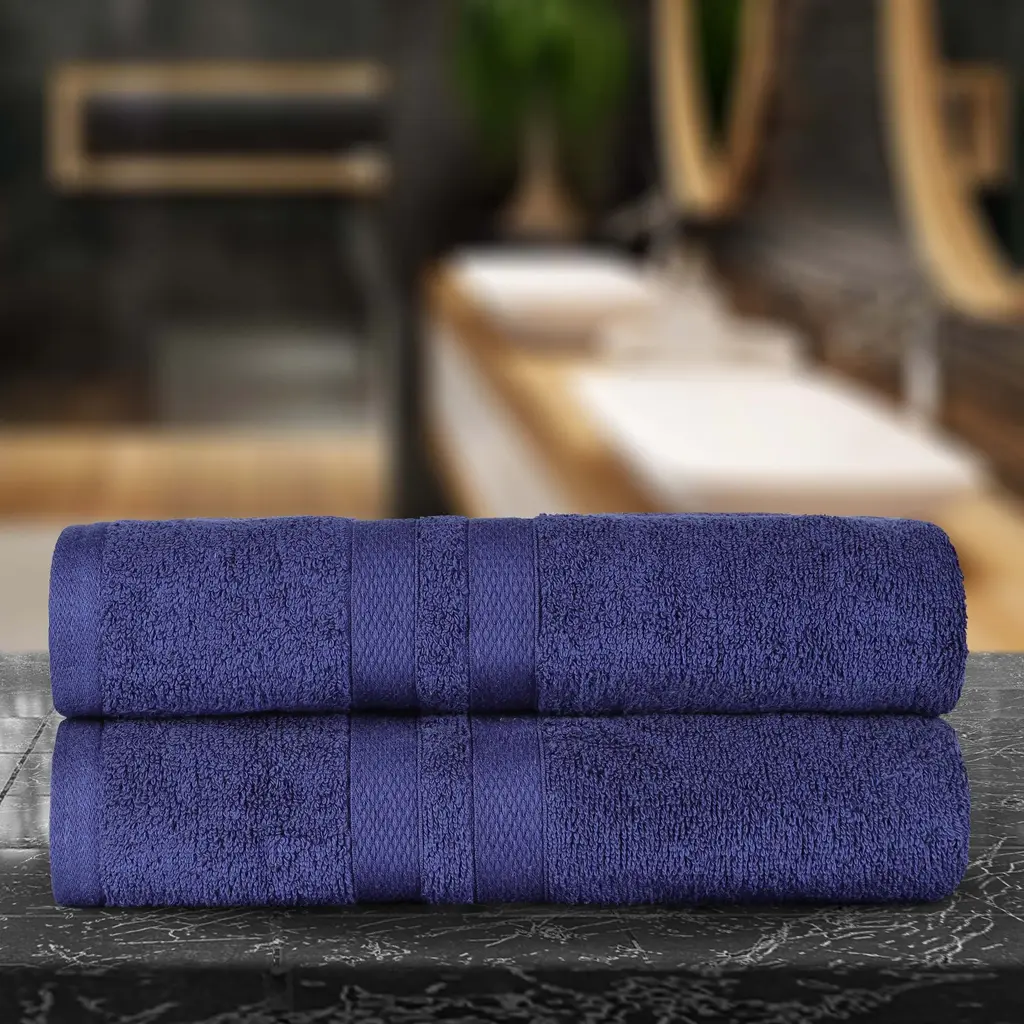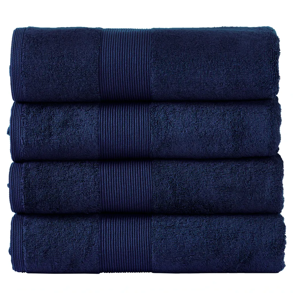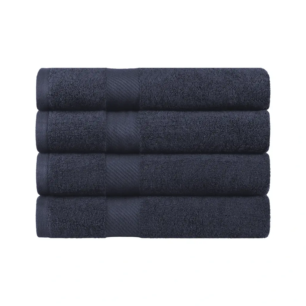 This Navy Blue XXL Cotton Towel set features four premium towels that combine high absorbency with stylish design. Ideal for use in bathrooms, guest rooms, or as versatile beach towels, these towels enhance your bathing experience with their soft touch and generous dimensions, providing comfort and functionality through their minimalist aesthetic and sturdy material. Luxurious Texture: Made from 100% cotton, these towels offer a smooth and soft feel that gently touches your skin while staying durable. The fabric quality ensures they remain plush and comfy, even after loads of washes.Versatile Use: These towels are great for all sorts of settings, whether at home or outdoors. Perfect as bath towels, beach towels, or pool towels, they cover all your drying needs while adding a dash of style anywhere.Machine Washable: Easy to clean, these towels can go in the wash with warm water and some light soap. Just steer clear of fabric softeners and bleach to keep their vibrant navy look.Functional Design: With a handy hanging loop, these towels can be easily hung up or stored away, making them practical for any space. This thoughtful design keeps things tidy in bathrooms or laundry areas.Ideal for Commercial Settings: Recommended for use in salons or spas, these towels are great for beauty treatments or everyday cleaning tasks, making them a trusted choice for busy environments.