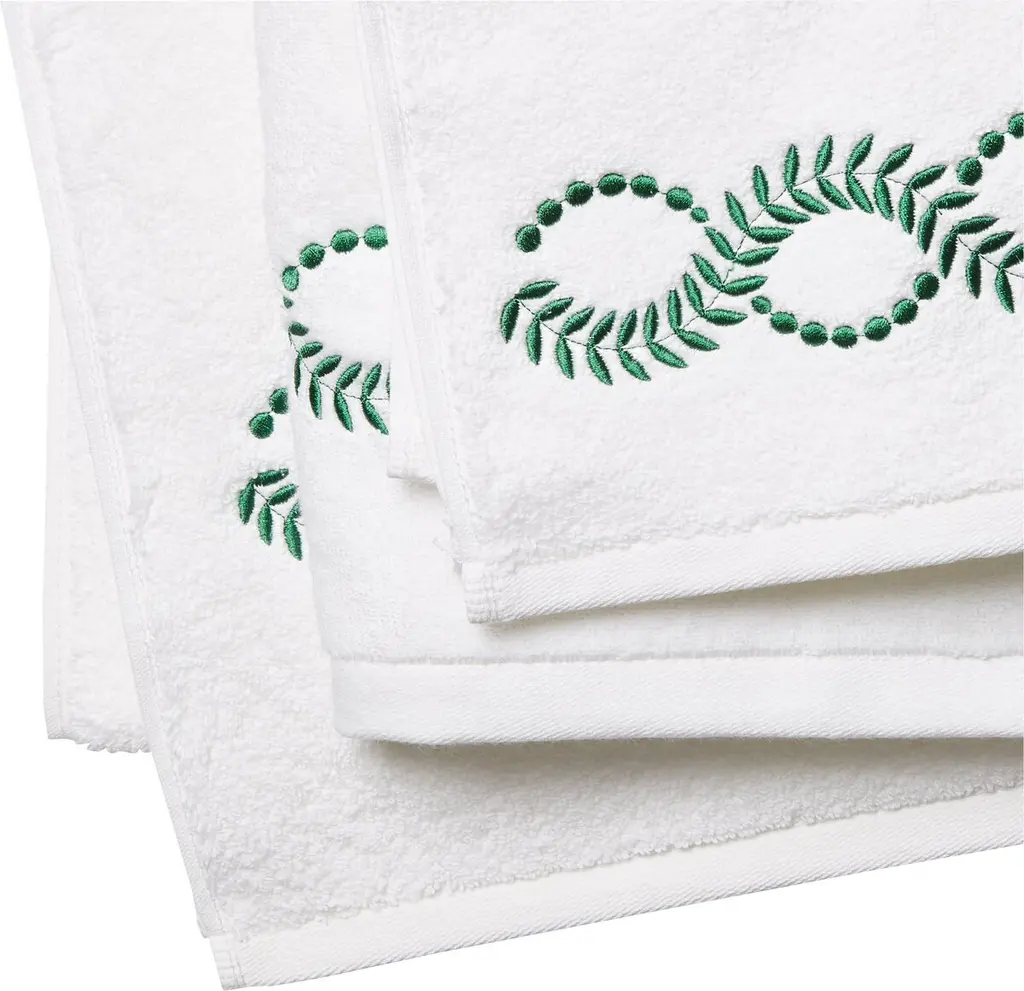 Exclusive to One Kings Lane: Pamper yourself with this set of spa-worthy, 600-grams-per-square-meter-weight towels. Finished with an embroidered vine motif in green, these super-soft combed cotton towels are as elegant as they are thirsty. Made in Portugal and embroidered in the USA.