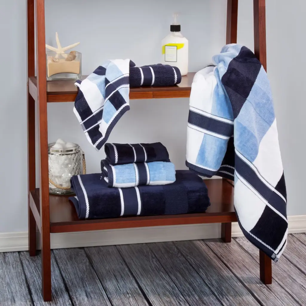 Yorkshire Home 6Pc Striped Bath Towel Set Navy : Microfiber, Machine Washable, Non-slip Backing