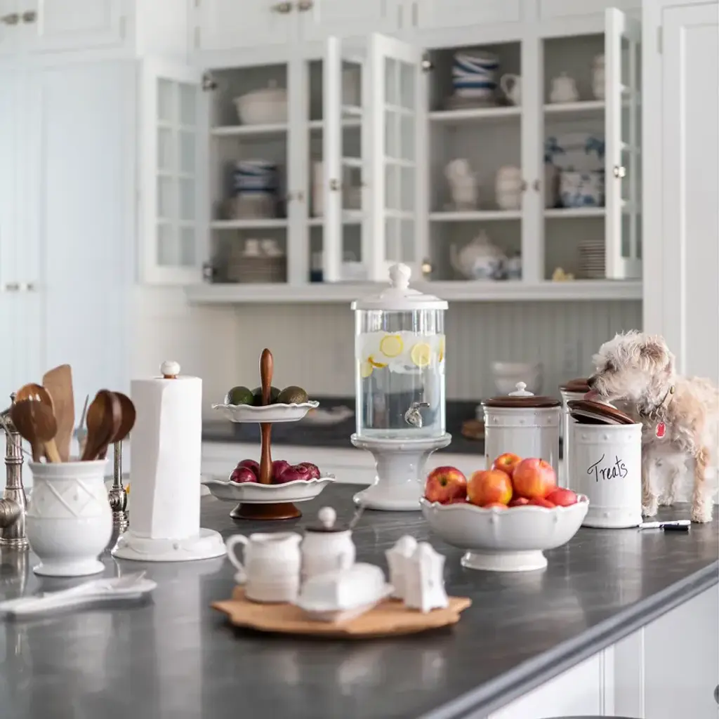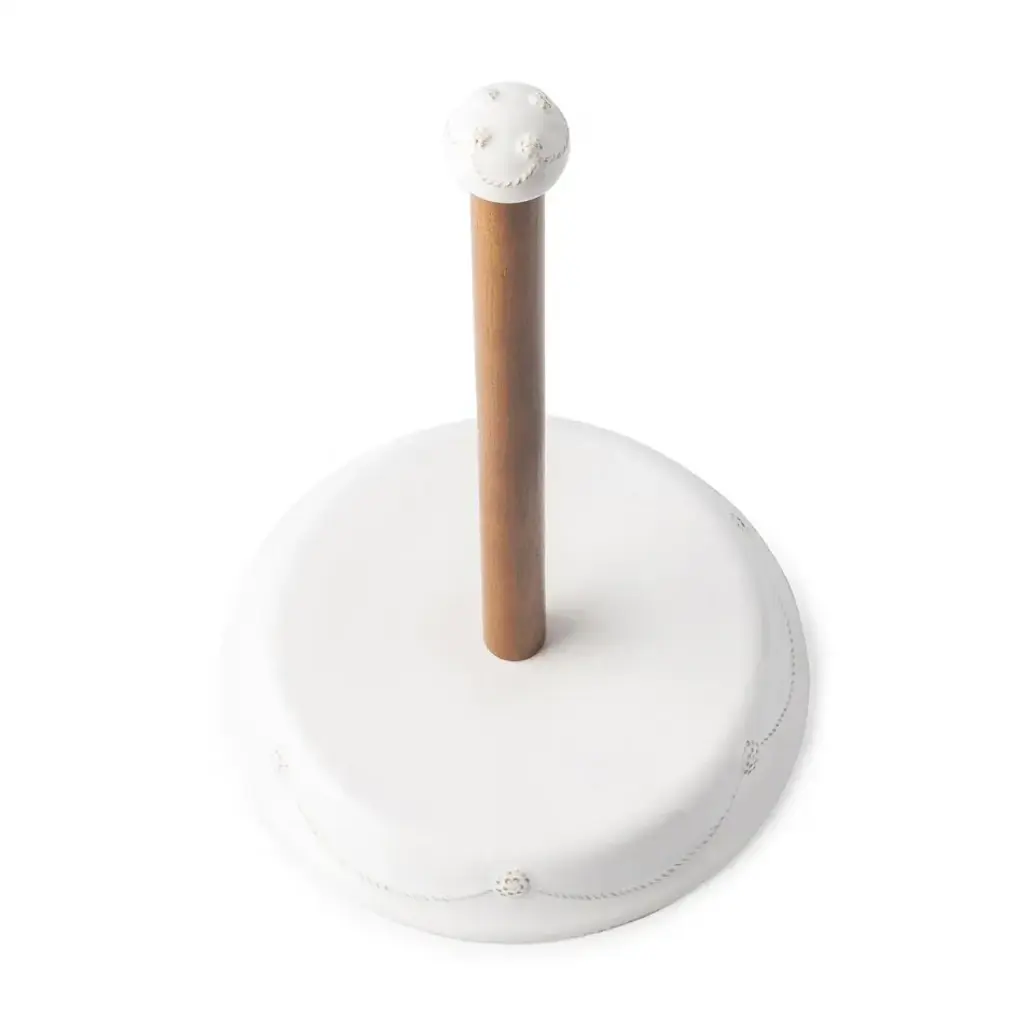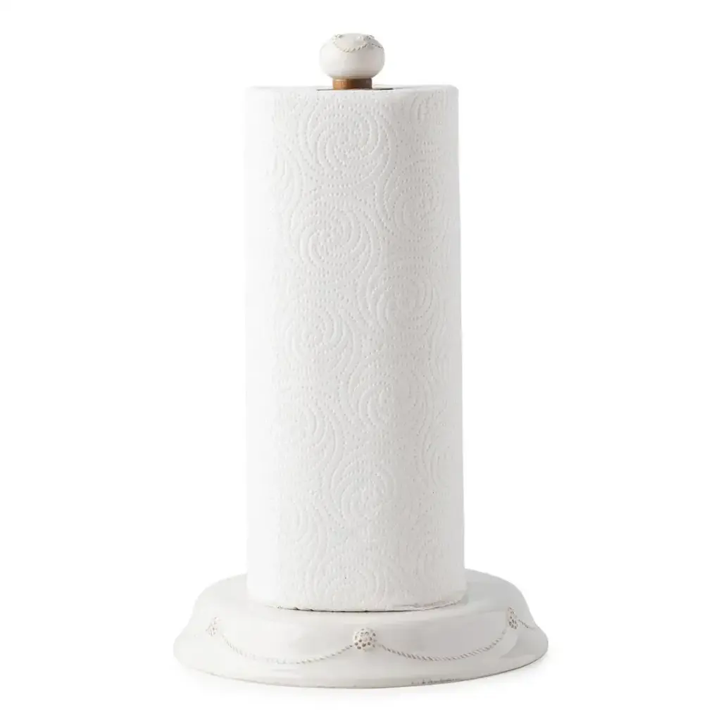 Whitewash-glazed paper towel holder, decorated with our subtle thread and berries motif, complete with wooden spool center. A nod to our signature Bohemian glassware collection, this is a practical instrument there for dribbles on the countertop or surprise spills while cooking. Based in Connecticut, Juliska is committed to bringing elegant European design into our modern homes. Since its founding in 2001, when David and Capucine Gooding began by working with artisans outside of Prague to reproduce antique Bohemian glass pieces, every piece from Juliska has shared a rich heritage spanning six centuries of European design. Juliska's creations are timeless, romantic and effortlessly chic.