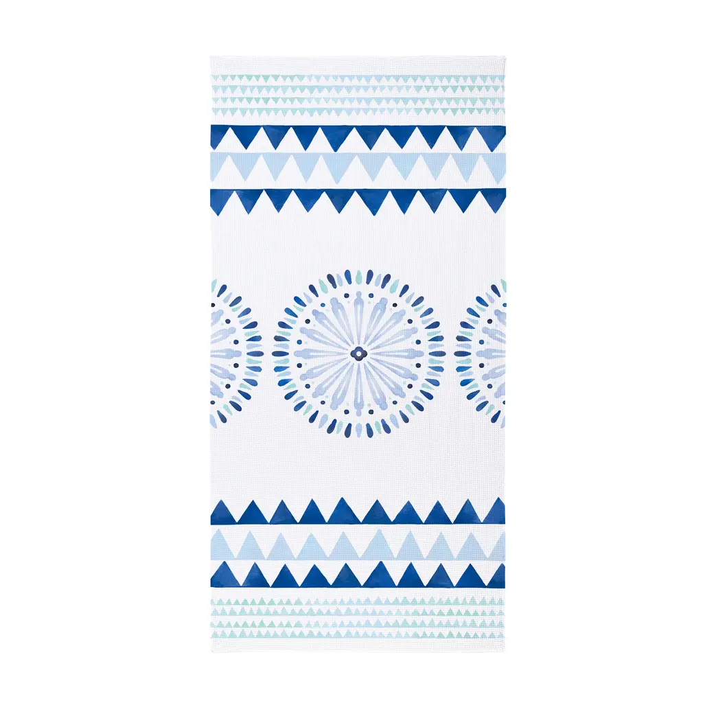 Blue Coastal Towel Quick Dry Waffle Weave W/ Matching Carrying Case, Shibori, 60"l X 30"w