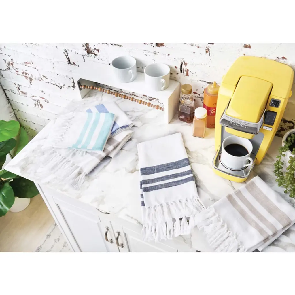 A new interpretation of a carol & frank classic - the woven Morgan kitchen towels. Morgan kitchen towels are available in the color options of boulder, denim, dune, indigo, and surf. Mix and match colors or with other kitchen towels or linens to create a tablescape set and a vibrant layered decor.