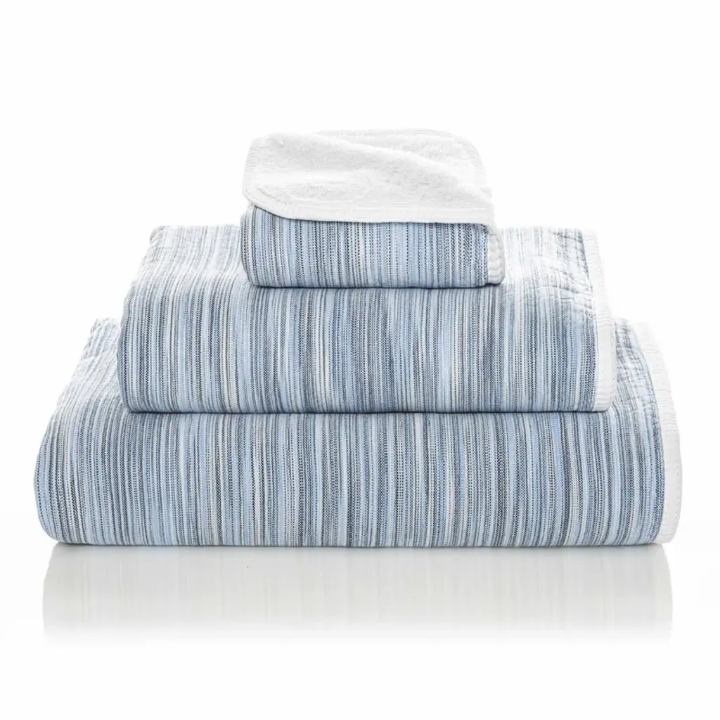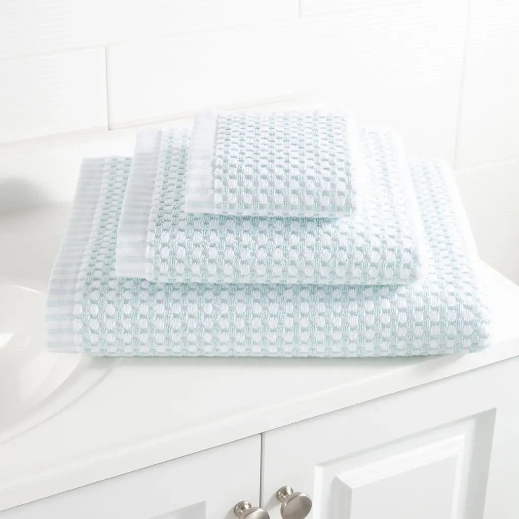 Plush and absorbent, these charming all-cotton towels are made of uncut loops dotted on a white base with end-on-end striped hems. Made in Turkey and constructed of premium Turkish cotton that has extra long fibers and becomes even softer and fluffier with successive washings.