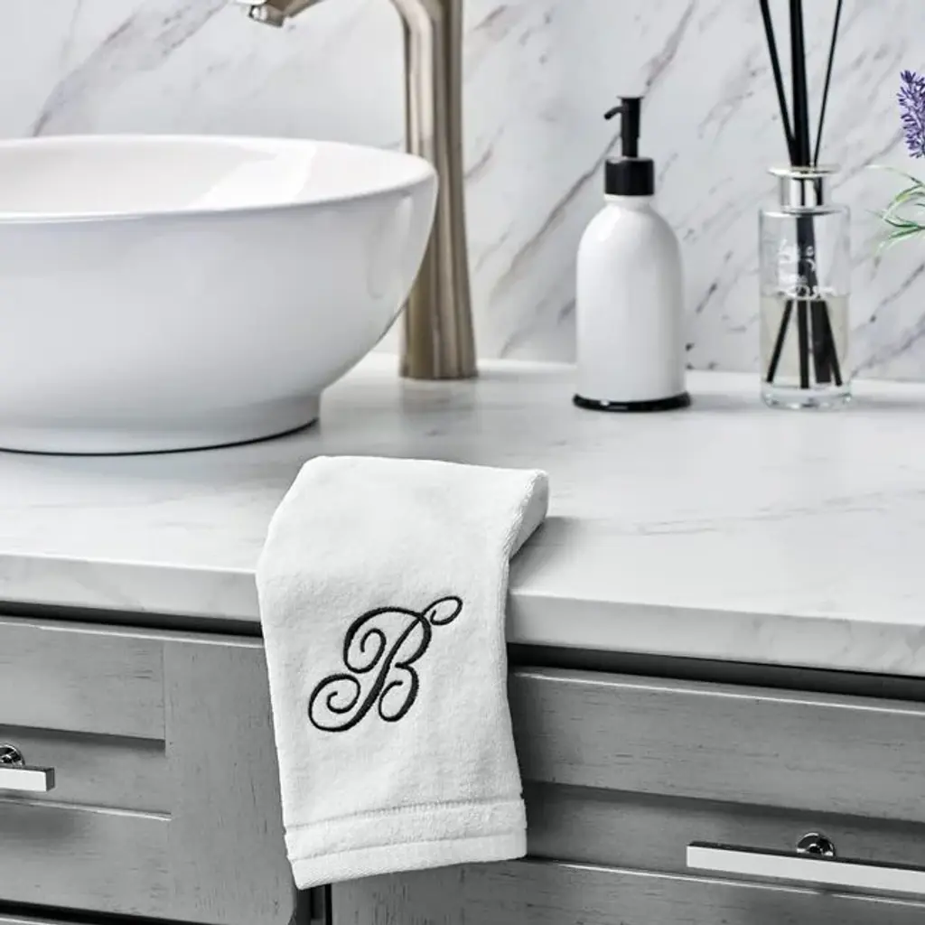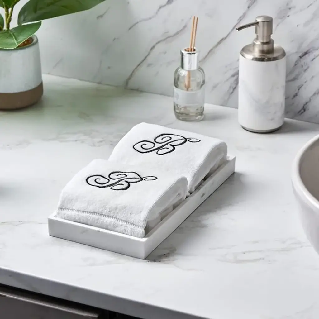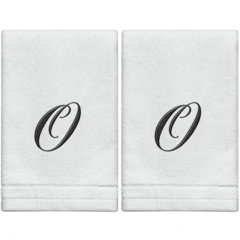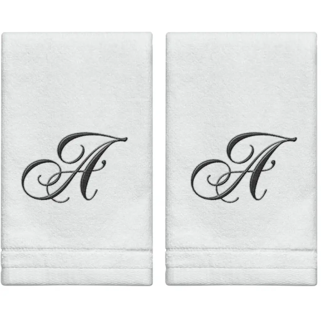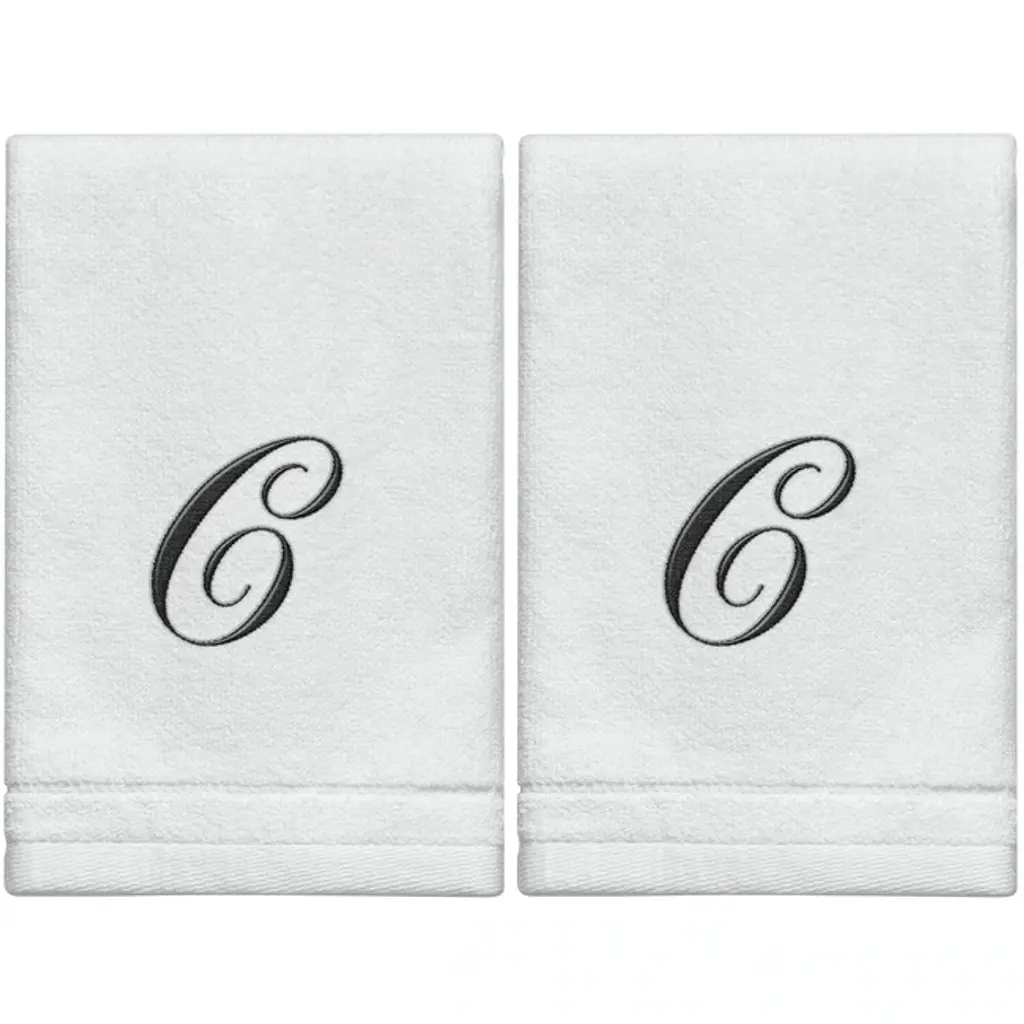 Creative Scents White Monogrammed Initial Fingertip Towels With Black Embroidery - H