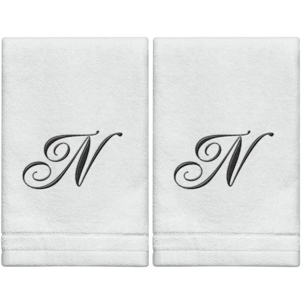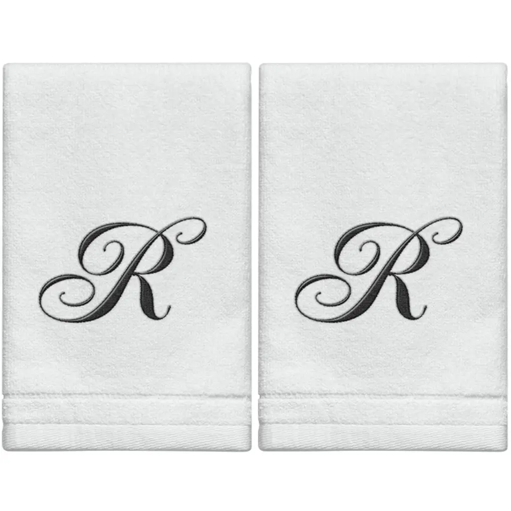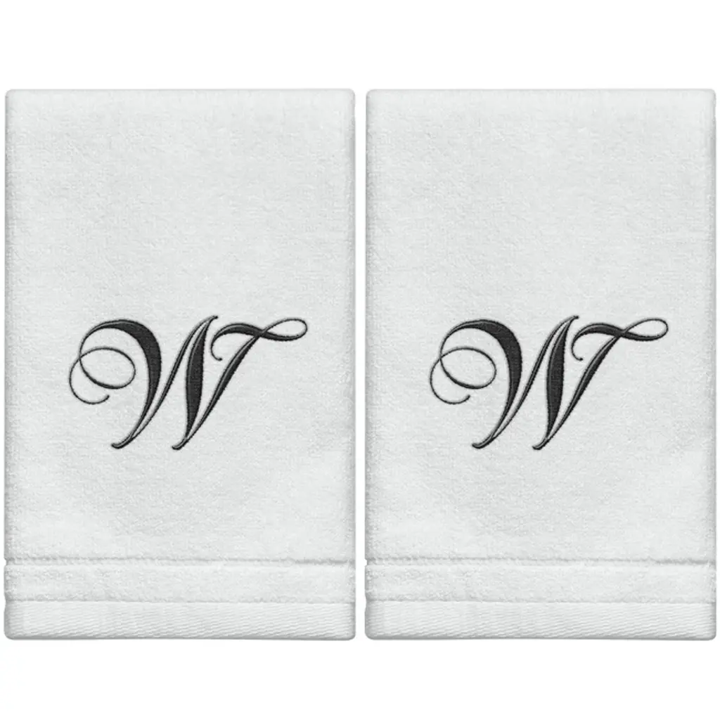 Creative Scents White Monogrammed Initial Fingertip Towels With Black Embroidery - J
