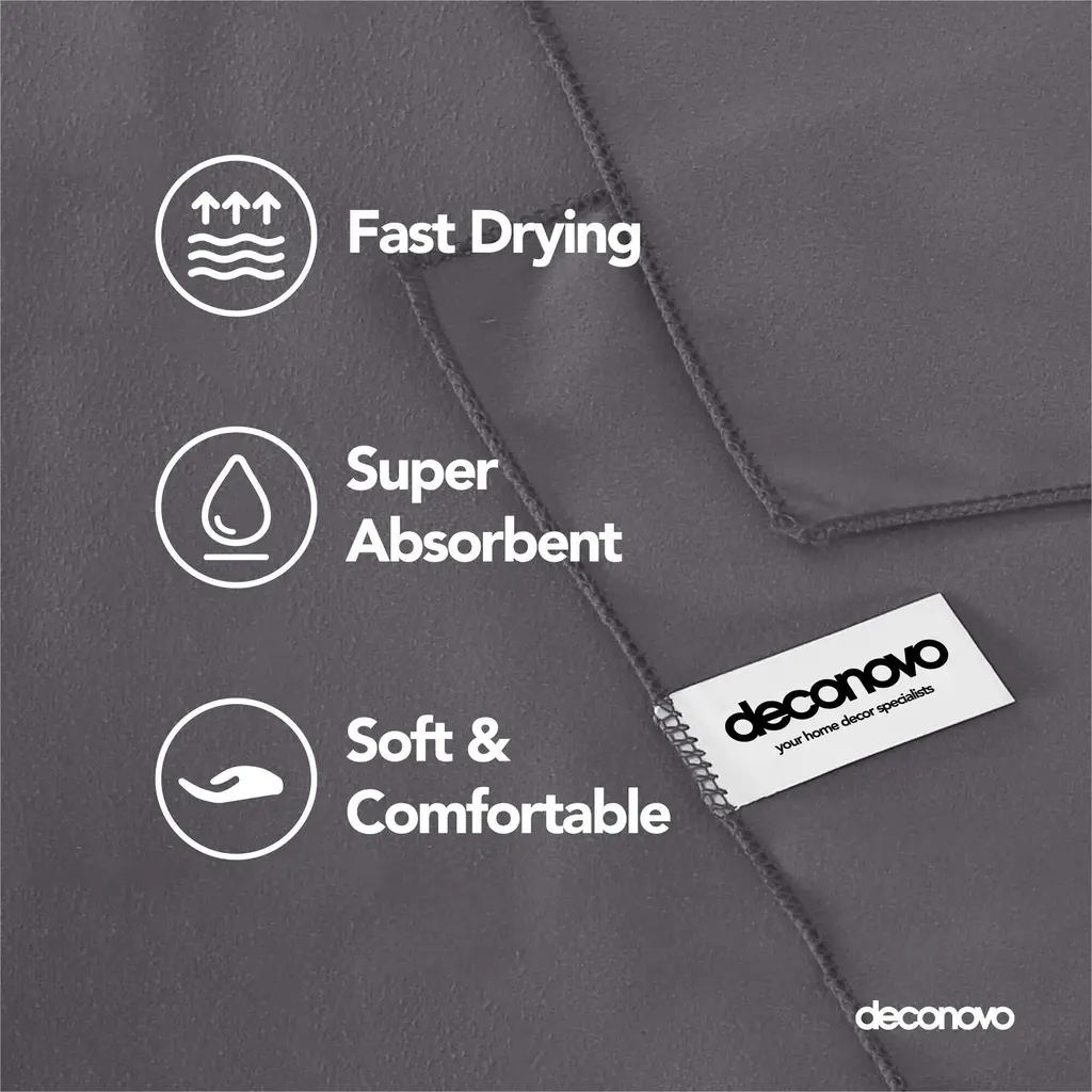 Deconovo Quick Dry Microfiber Towels Set With Carry Bag - 2Pc-27x51 - Grey