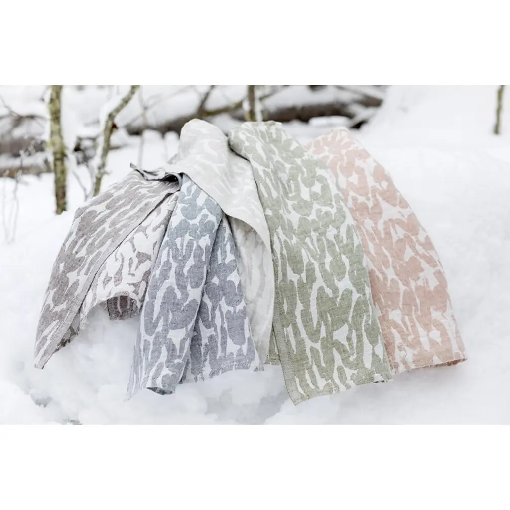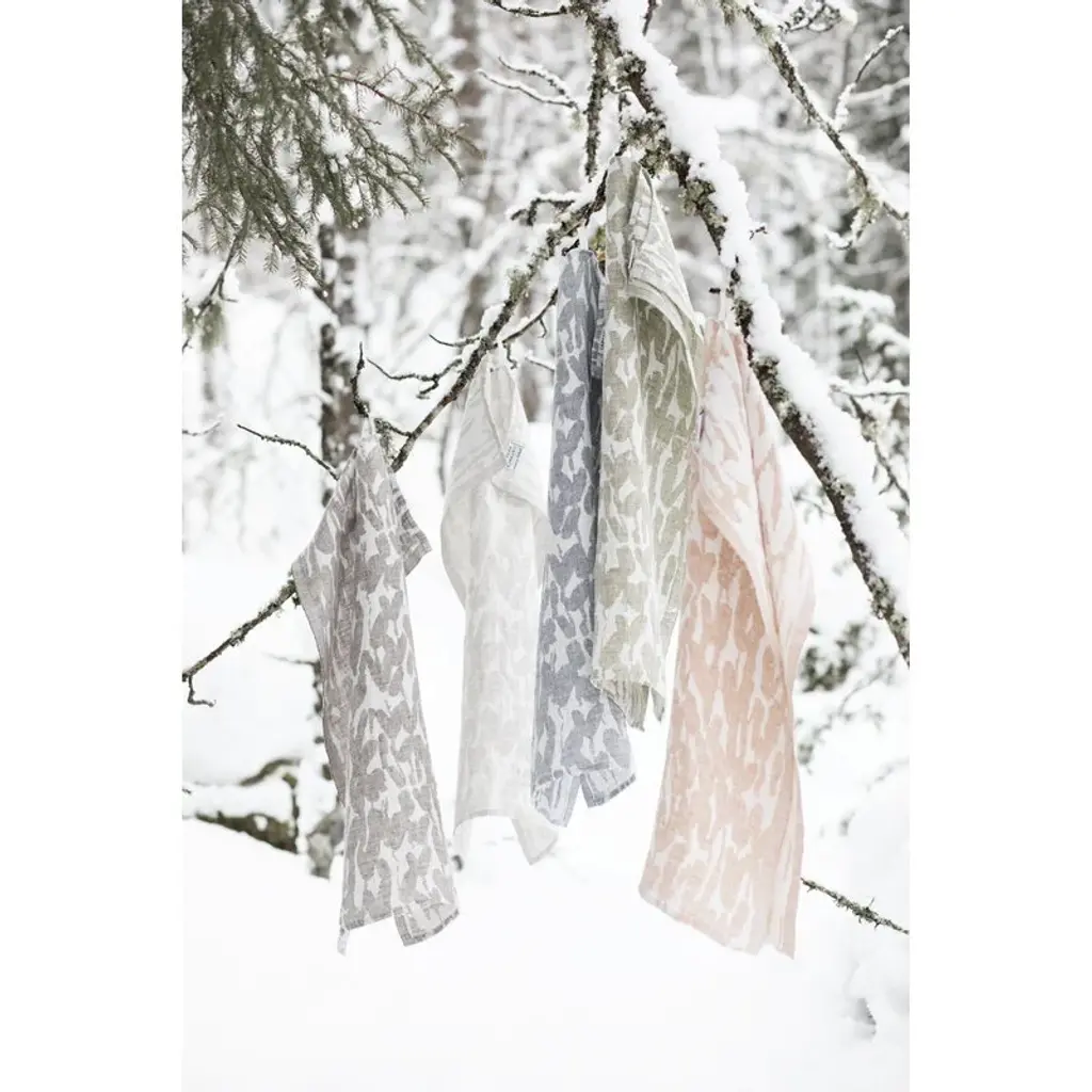 The Jäkälä giant towel by Lapuan Kankurit is made of linen, which is a carefree and beautiful material – and feels gentle against your clean and warm skin after a sauna! Quick-drying and absorbent, the towel is also perfect as a picnic blanket in the park or on the beach. The giant towel is decorated with a beautiful pattern, designed by Saara Obele, that praises the Finnish forest and its secrets. The Jäkälä towel is woven in Finland at the own weaving mill of Lapuan Kankurit.