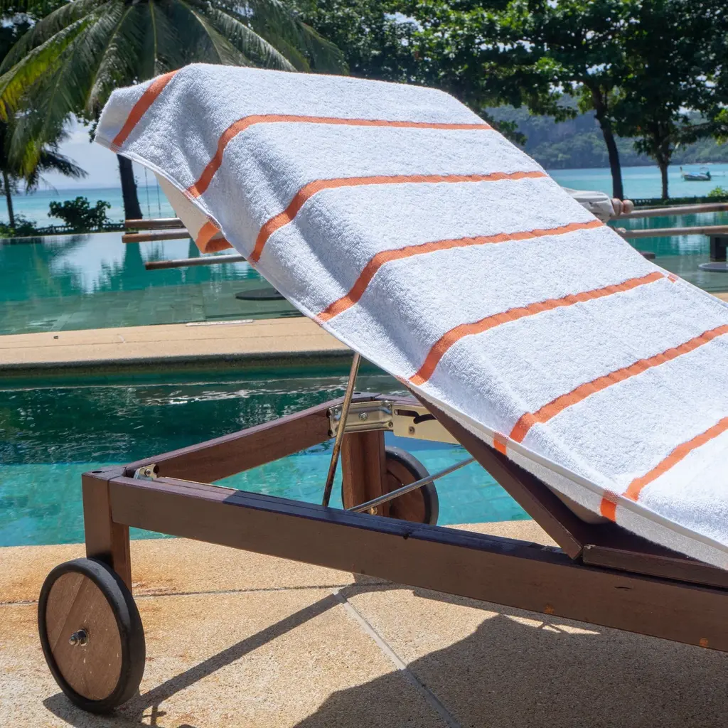 The Arkwright Las Rayas 2-Piece Chaise Lounge Covers are made with soft 100% premium cotton and is interwoven with polyester stripes for a unique look at the beach or pool. This thick, absorbent towel has charming-colored stripes running across its width and features an 8-inch pocket on one side of the towel to secure to your favorite lounge chair. Our beach towel is plush, soft, highly absorbent, and quick drying and are perfect to use these as extra-long beach towels or pool chairs. These are lightweight but absorbent towels will wick away water quickly and dry fast. Ideal beach chair towels with pockets for adults or for kids at a beach, pool, resort, Airbnb bed and breakfast, VRBO vacation rental, beach house or hotel. Machine Wash with like colors. Do not bleach. Tumble dry low. Always wash new towels before use as some lint may be generated. Features:Dimensions: