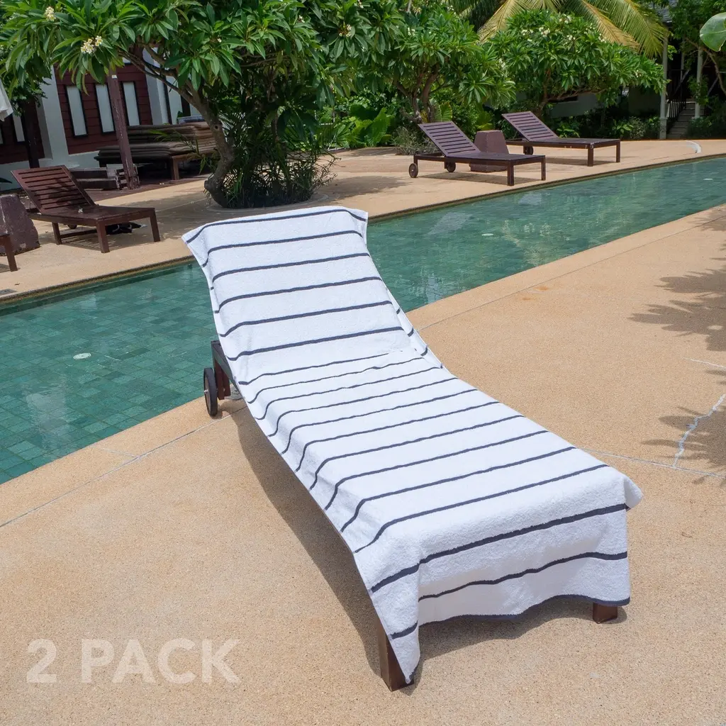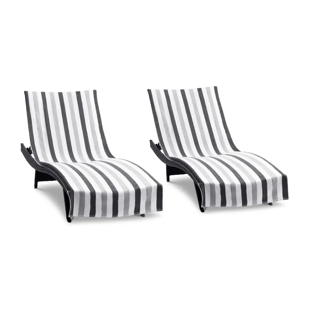 Las Rayas 2-Piece Chaise Lounge Towel Covers With Top Pocket - 30x85 - Dark Grey