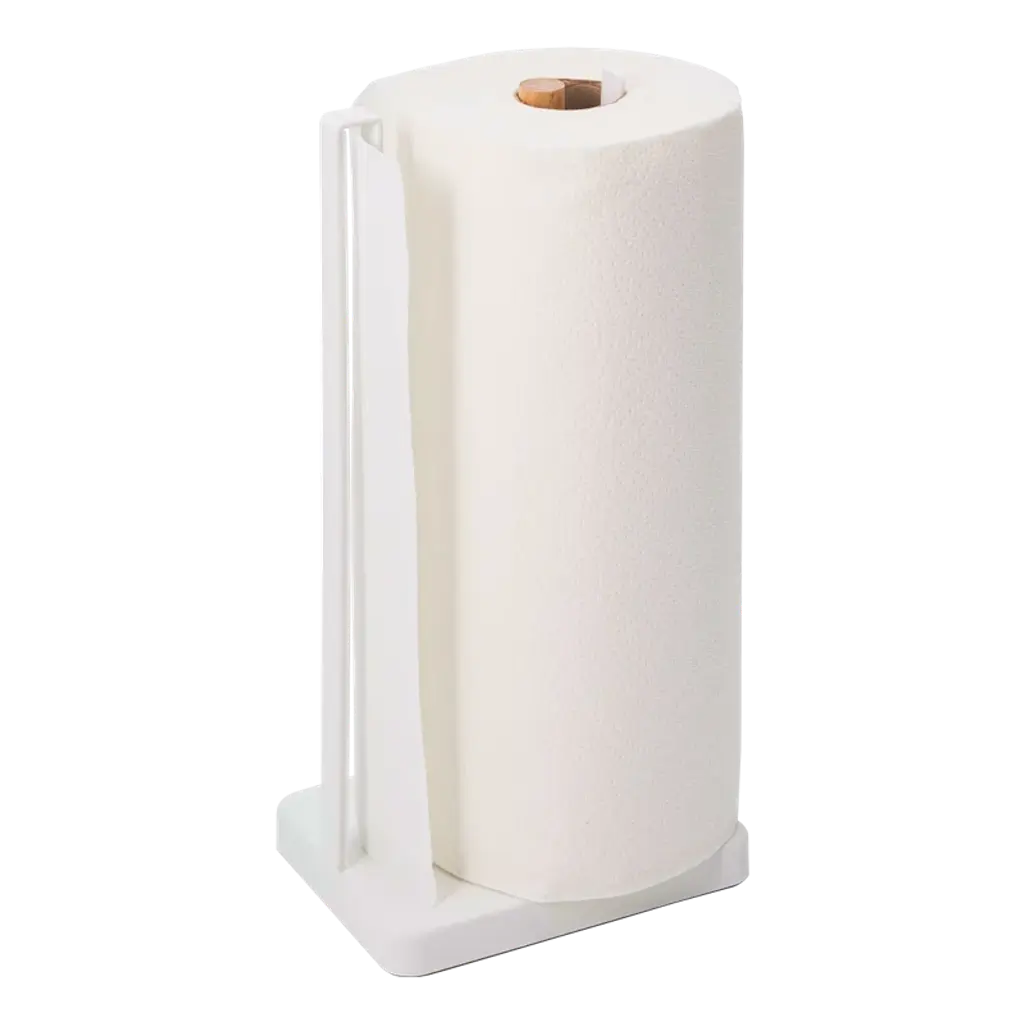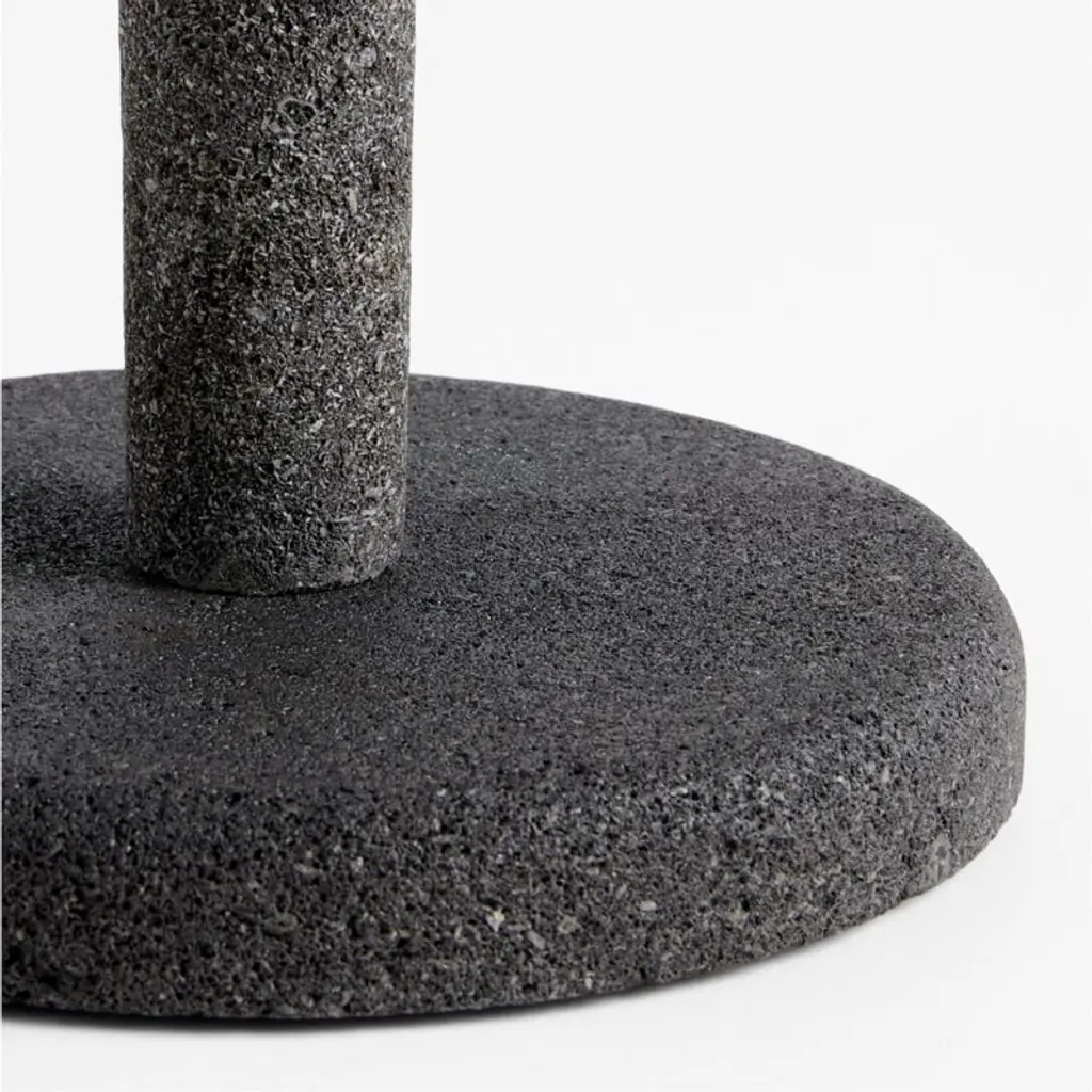 This sculptural paper towel holder crafted of lava stone elevates a kitchen essential into a display-worthy statement piece. The dark grey rod keeps a roll upright and at the ready, and the weighted base prevents the holder from tipping over as you unroll and rip. We love the modern design language the exaggerated curves bring to the countertop.