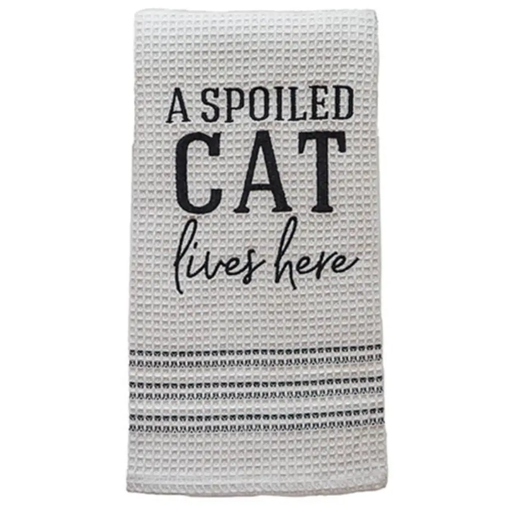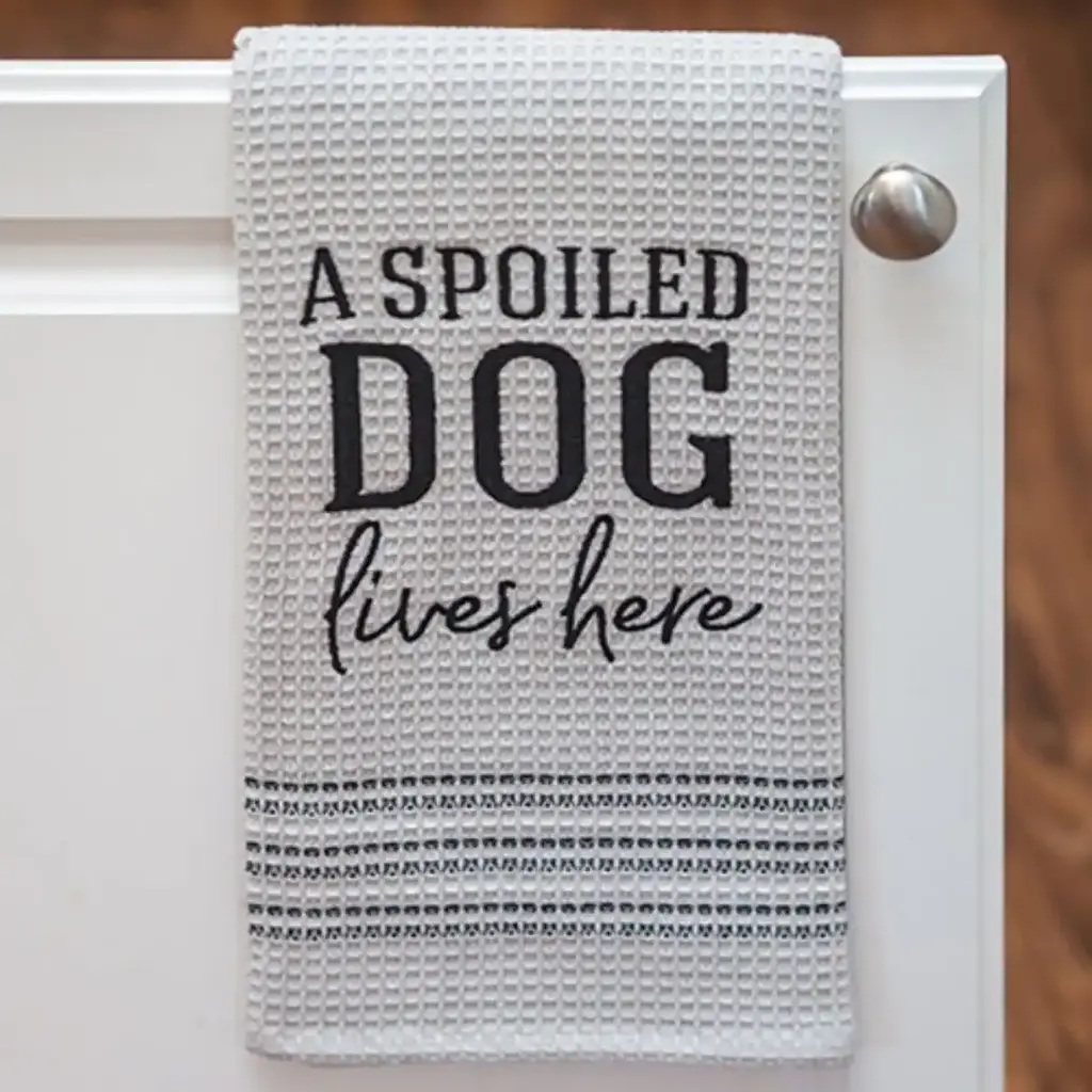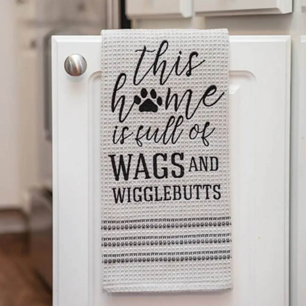 Light Gray Cotton Waffle Weave Towel With Black And White Striped Details And Fabric Hanger - 28" H X 20" W - Design 06
