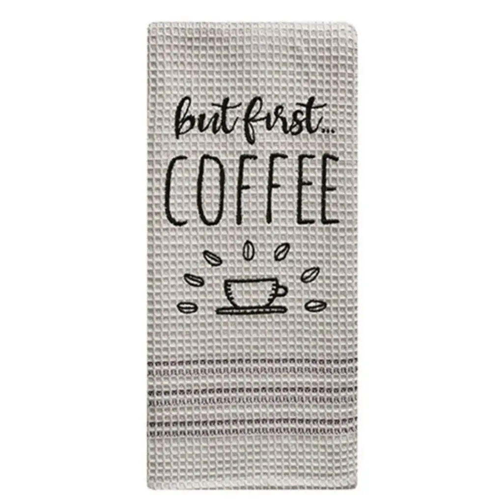 Light Gray Cotton Waffle Weave Towel With Black And White Striped Details And Fabric Hanger - 28" H X 20" W - Design 08
