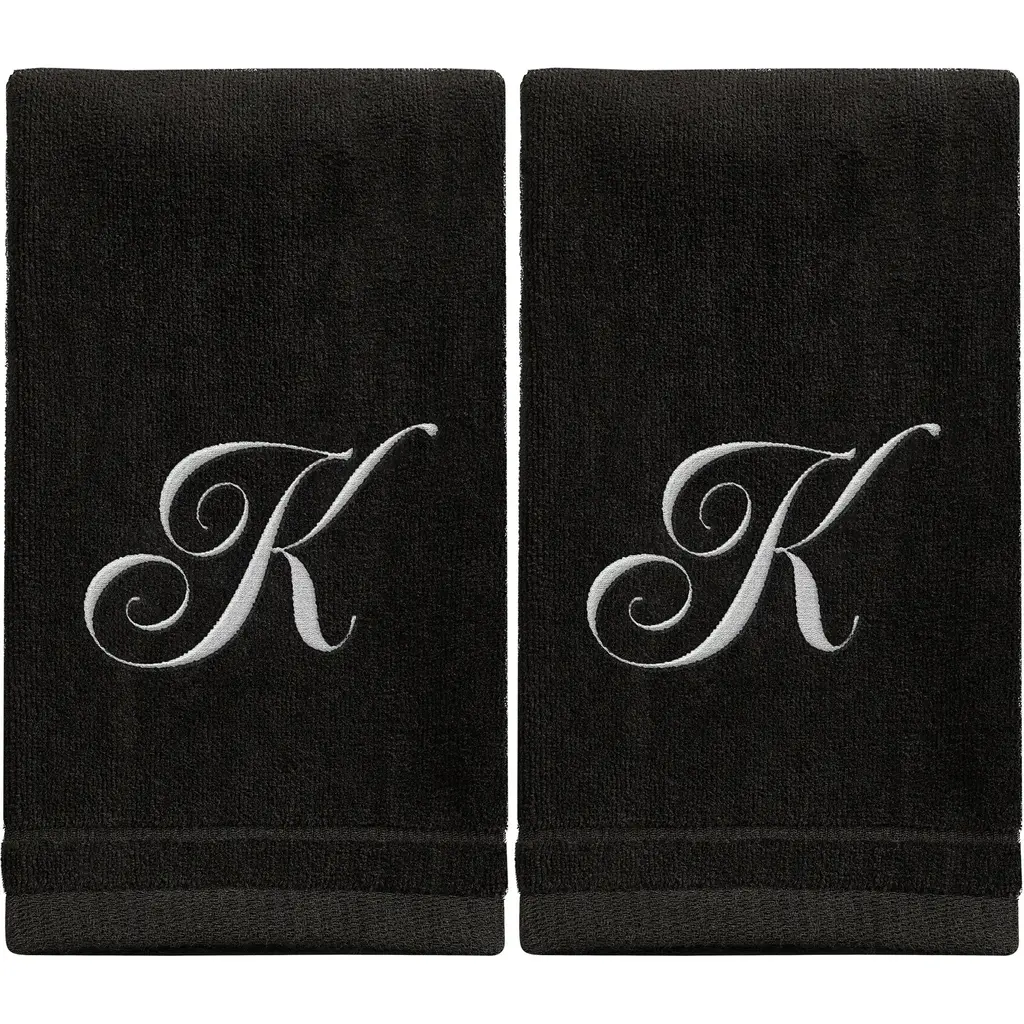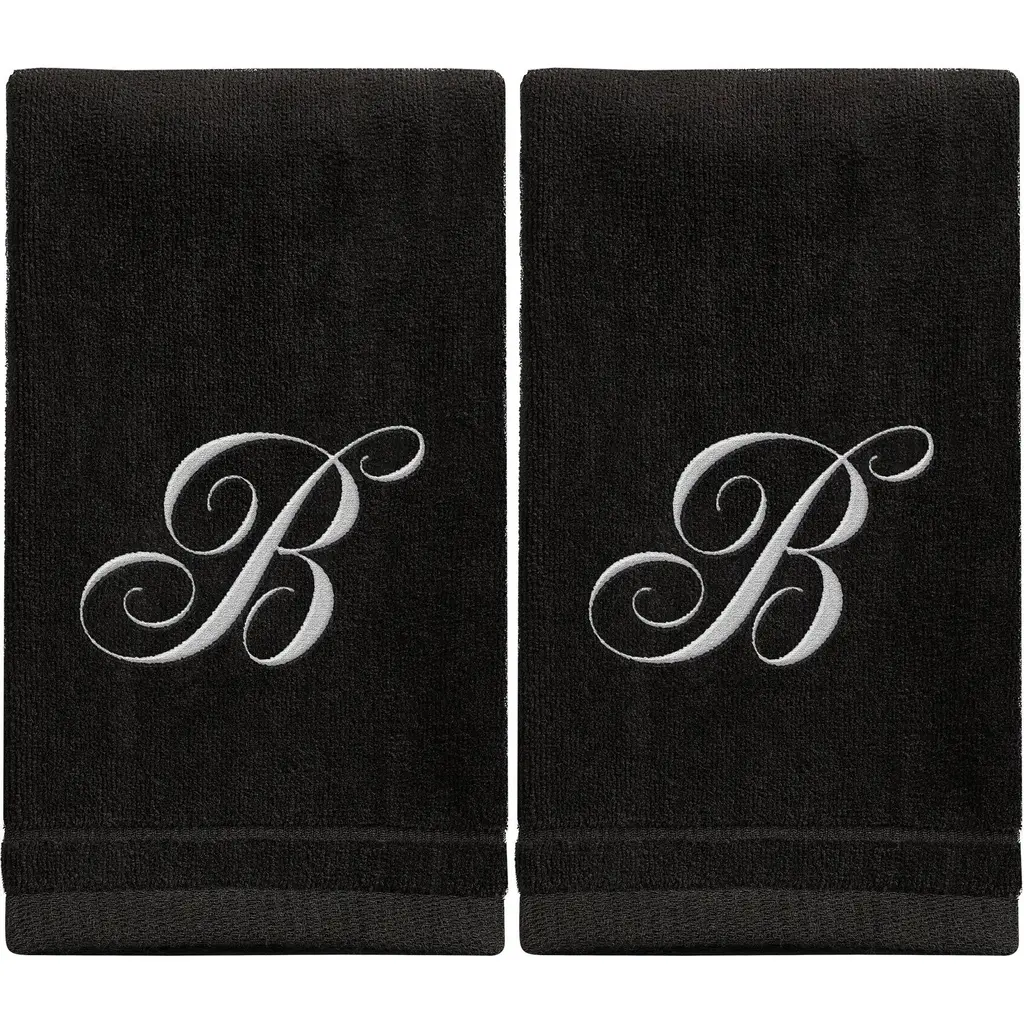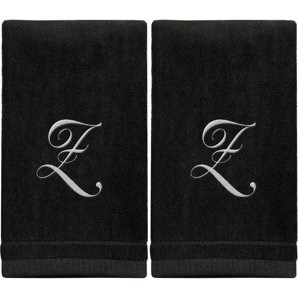 Monogrammed Black Towels Fingertip Embroidered With Initials - D