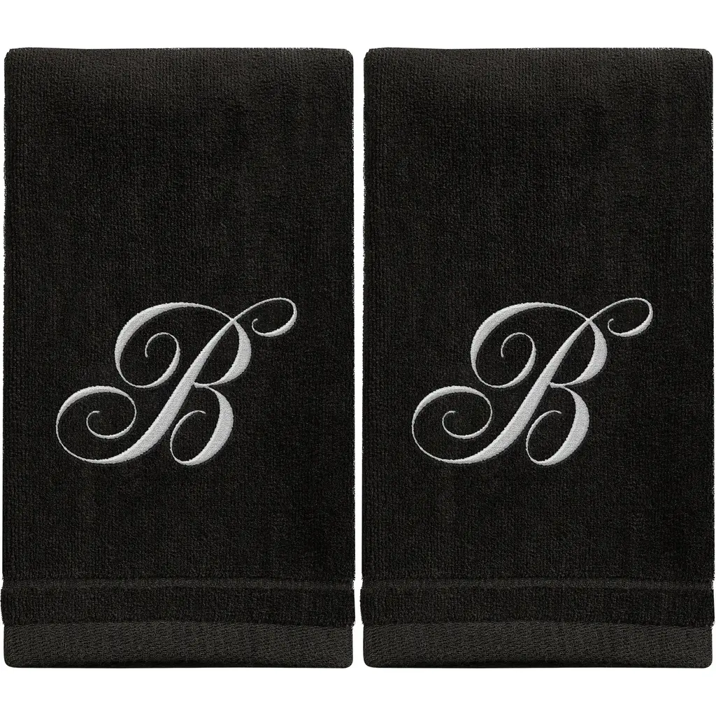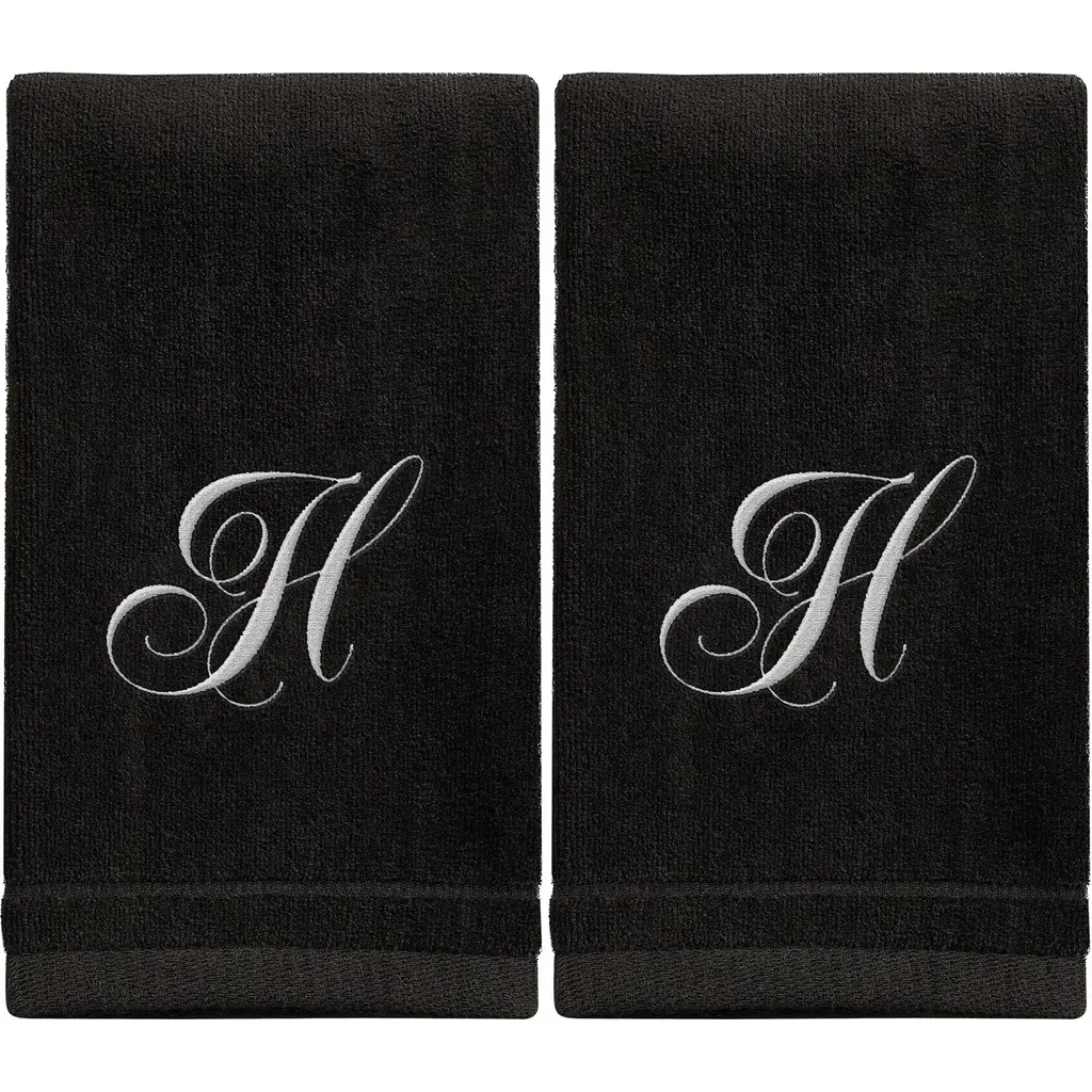 Monogrammed Black Towels Fingertip Embroidered With Initials - H