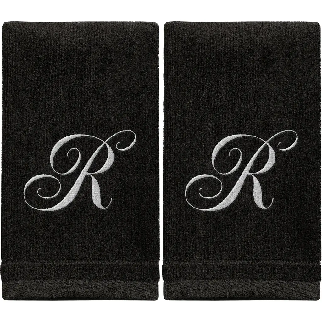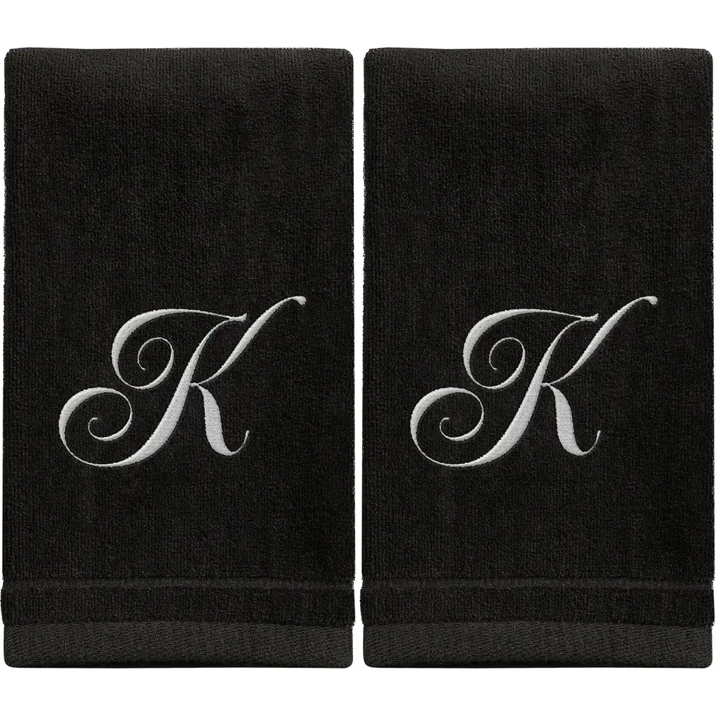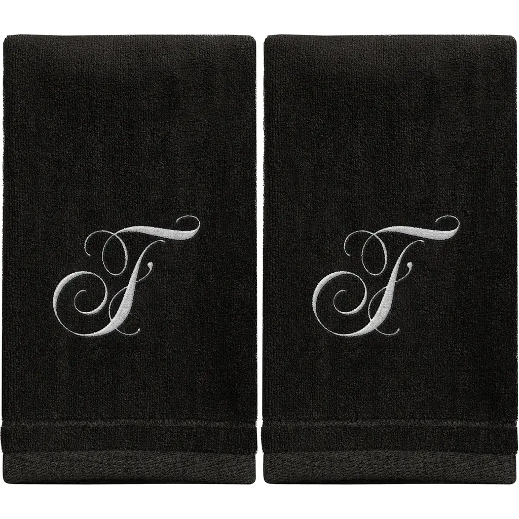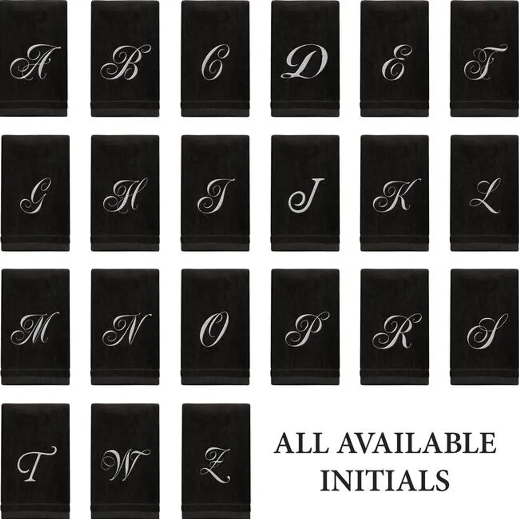 Monogrammed Black Towels Fingertip Embroidered With Initials - O