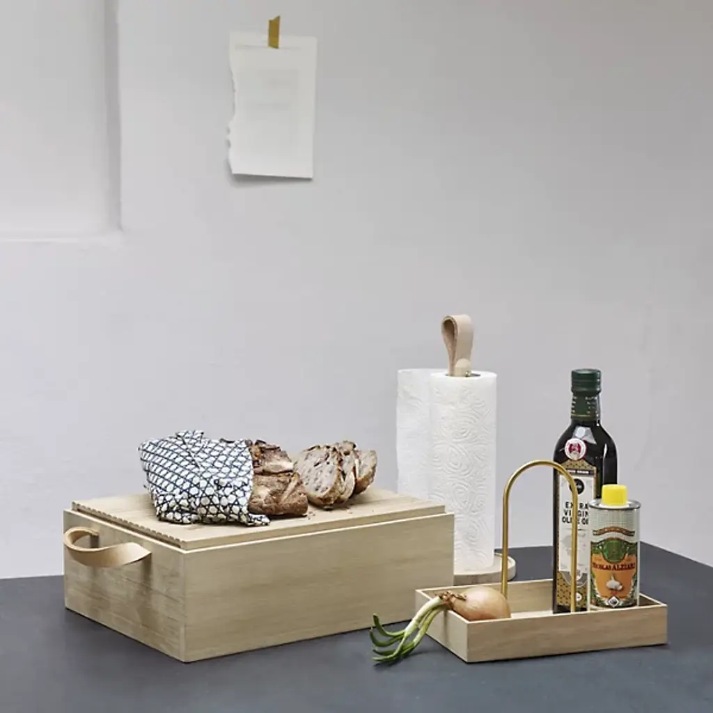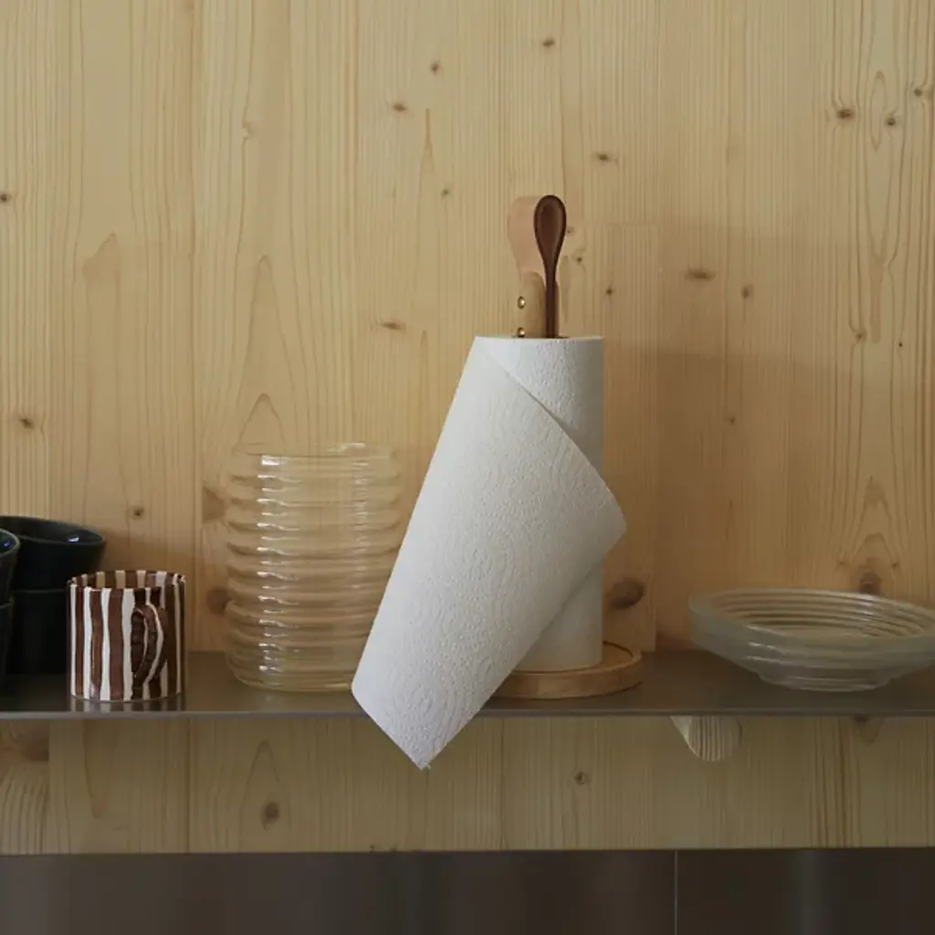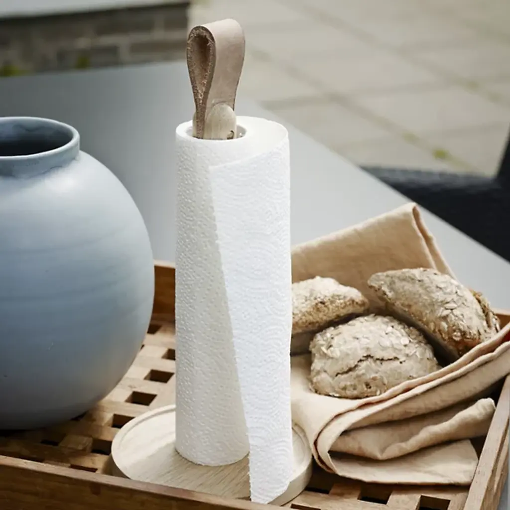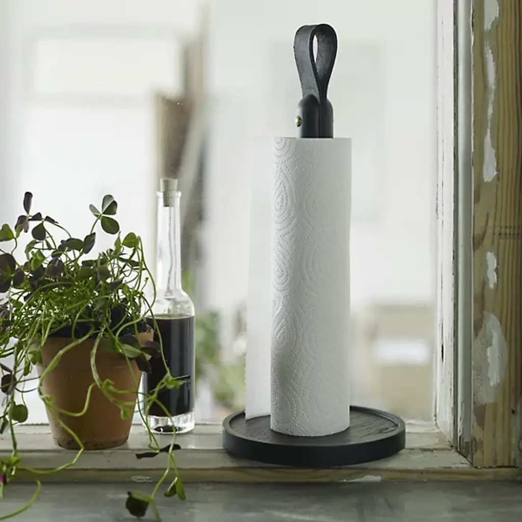 Bring a dash of minimalism to your kitchen with the Norr Paper Towel Holder from Fritz Hansen. Crafted from oak, this holder features a sturdy circular base and an elegant leather loop at the top. A linear shape makes your paper towels easy to grab. The clean-lined wooden base adds texture, while elegant leather adds refinement.