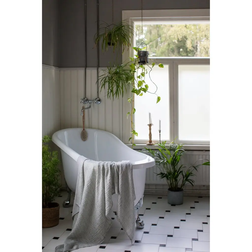 The Nyytti giant towel by Lapuan Kankurit is adorned with a calm and natural two-tone pattern by Elina Airikkala. Thanks to the four ribbon hangers on the edges, you can hang or wrap the towel in various different ways. The textiles of the Nyytti collection are extremely lightweight, quick-drying and highly absorbent. They fit in a small space and feel comfortable on the skin. Besides daily use, the Nyytti towels are excellent for traveling. Made of an innovative blend of European linen, Tencel and cotton, the towels have been woven at the Lapuan Kankurit weaving mill in Finland.
