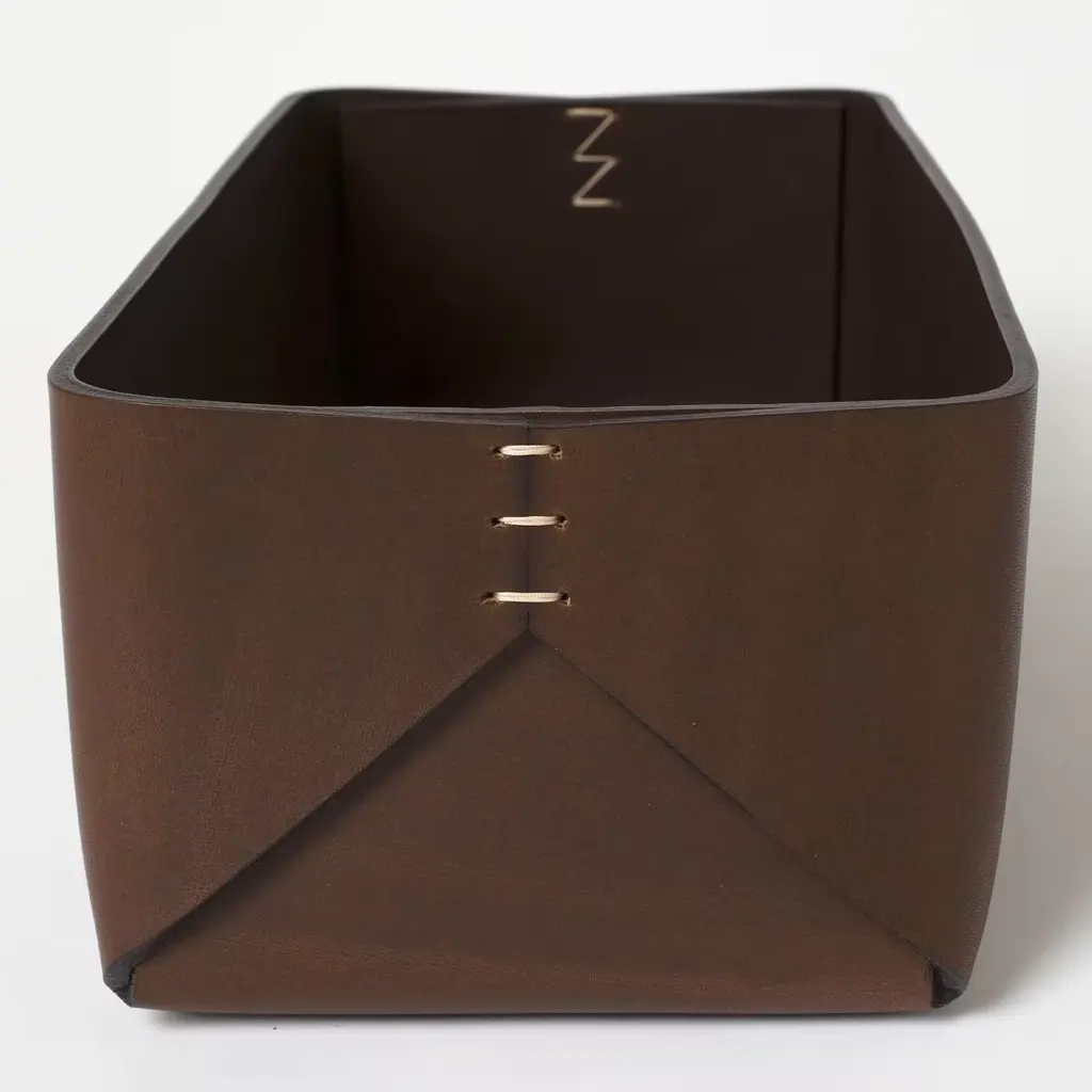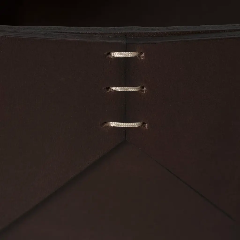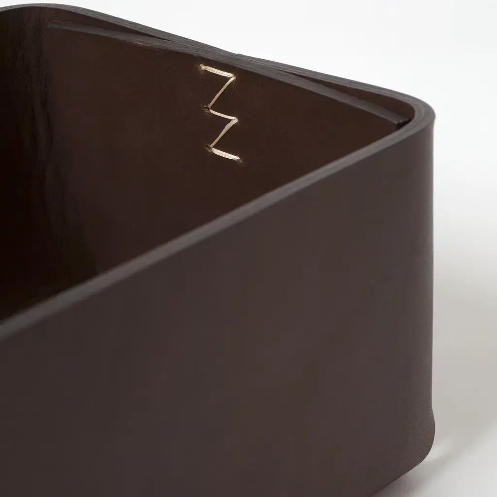 Minimalist rigor and sartorial elegance effortlessly coexist in this superb design conceived for storing towels with unprecedented refinement. Part of the Regular Collection, it is obtained by deftly cutting and folding a single double-layer sheet of premium leather, its deep brown tone only interrupted by few contrasting stitching. Please contact the Concierge for wide variety of available color variants.
