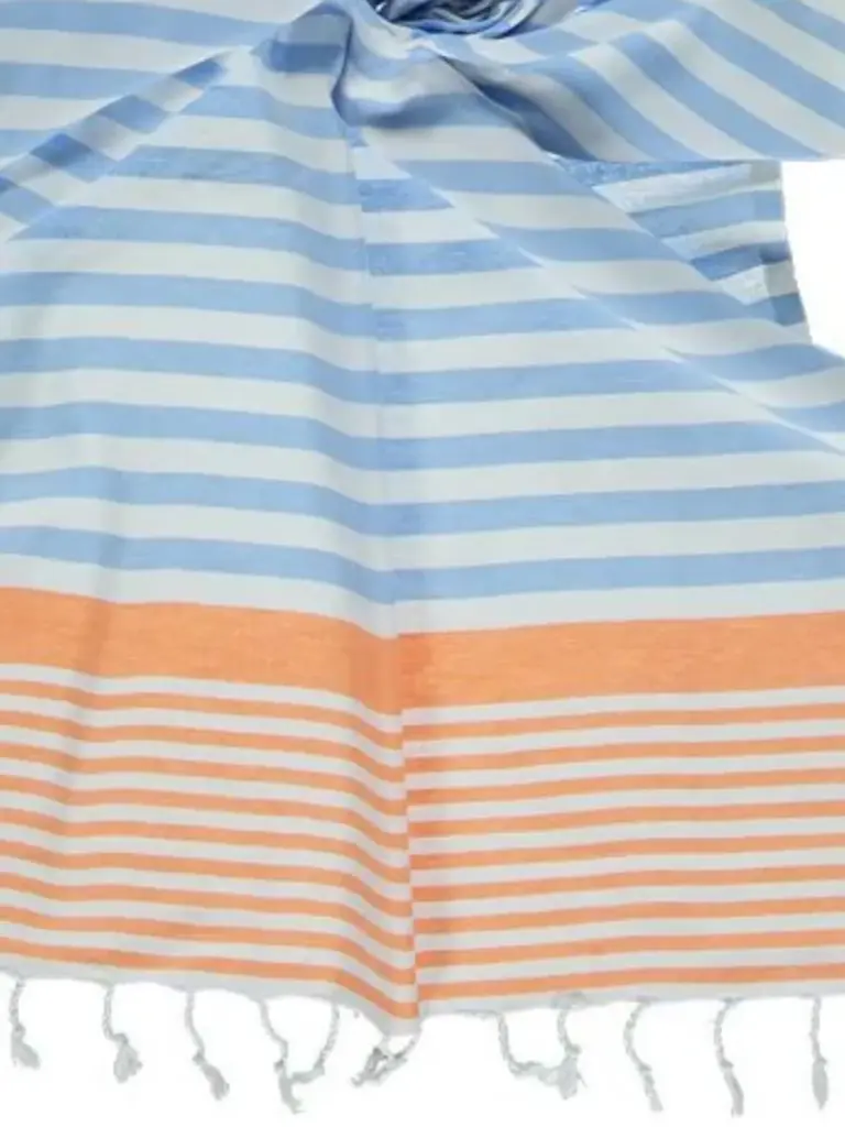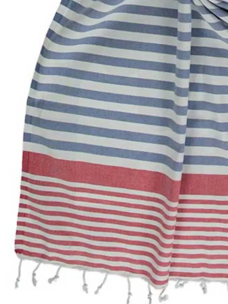The Sailboat Stripe Cotton Turkish Towel is made with soft lightweight breathable naturally wicking cotton. This towel is versatile and can be used as a chic pool, beach towel or even a picnic blanket. Color: Beige,Red,Navy Blue,Orange,Turquoise Size: 37"x70" Material: 100% Cotton Made in Turkey. Machine Wash Delicate with like colors. Tumble Dry Low. Low Iron.