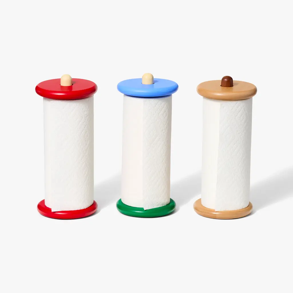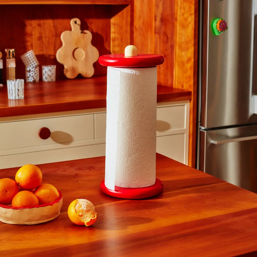 Upgrade your kitchen with the attractive and functional Spool Paper Towel Holder from Areaware. Its unique shape and modern design make it a countertop centerpiece, begging to be on display. Made of durable solid wood, it's easy to assemble and stays in place with rubber bumpers. Say goodbye to boring paper towel holders - cleaning up just got a little more delightful. Highlights