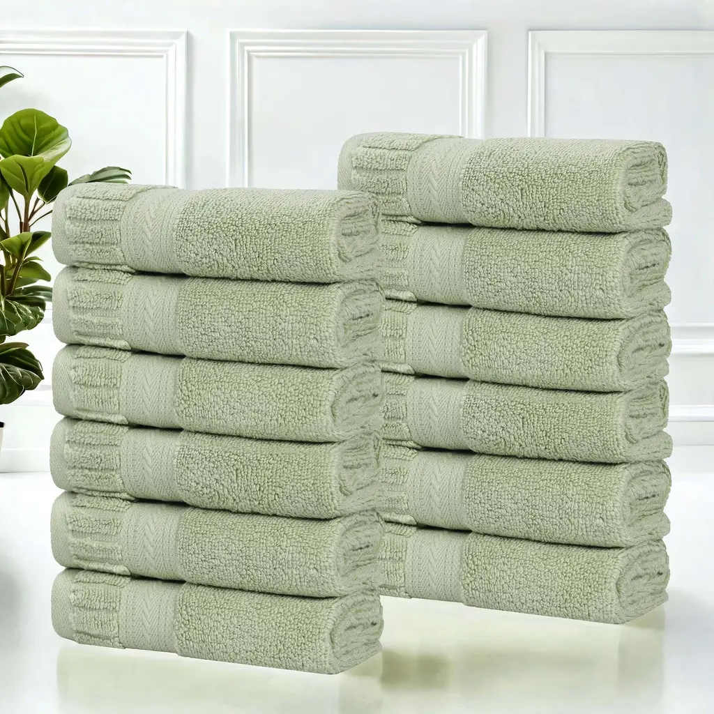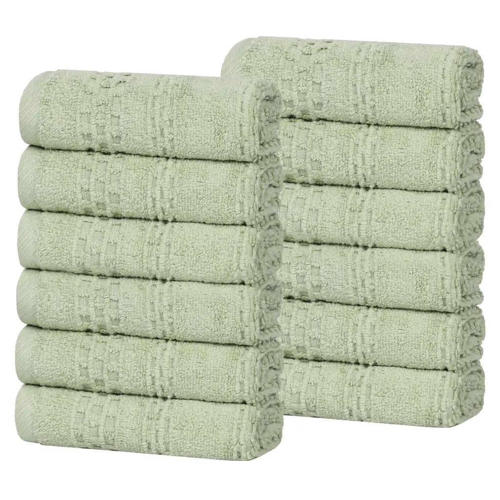 Superior Playa Zero Twist Cotton Solid Waffle Textured Face Towels, Set Of 12 - Green