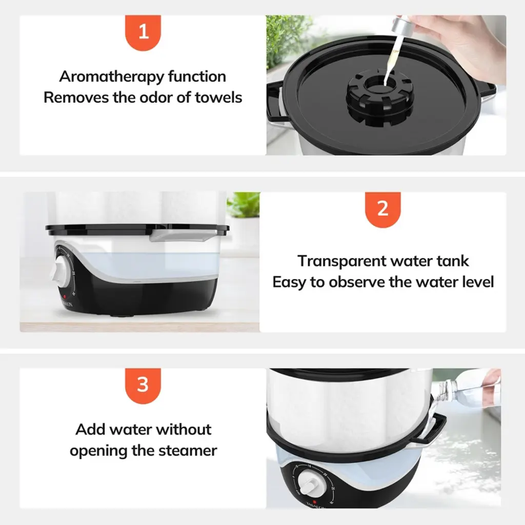Compact Towel Warmer — Warm your towels, face masks, or cloths with ease using this compact towel warmer. Features heat up to 212°F and a simple timer (0–30 mins) for everyday use. With dual water inlets and a foldable design, it’s easy to fill, use, and store. Great for home spa days, personal care routines, or as a thoughtful gift.