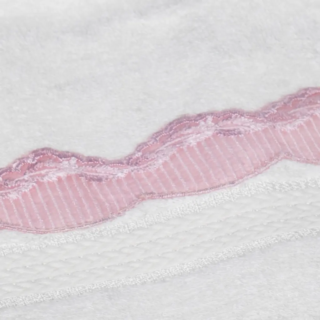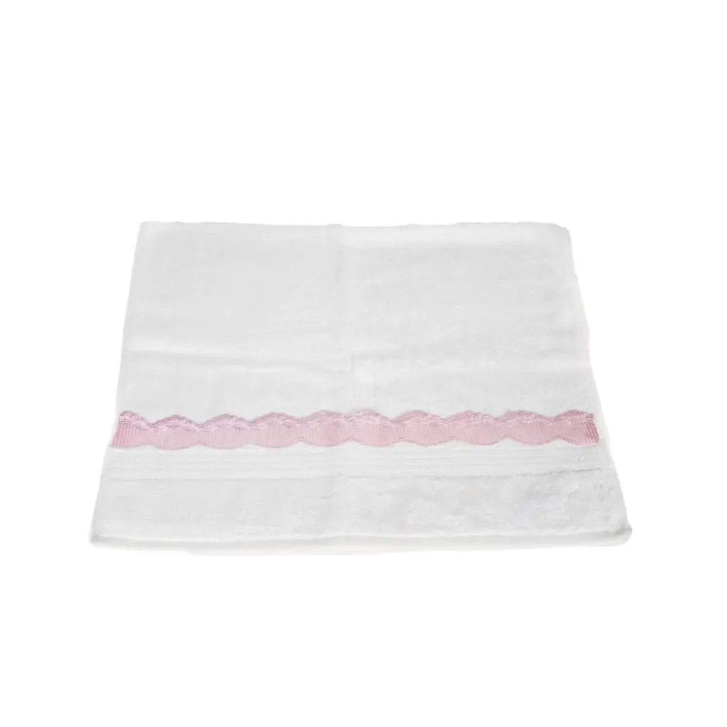 White towel has pinkie strap. Towel is 65% bamboo & 35% cotton