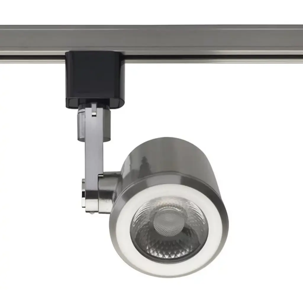 Add a spotlight to your spaces with the contemporary design of the 12W Piston LED Track Kit from Huxe. This small fixture made from durable aluminum fits standard junction boxes. It is sloped ceiling adaptable, delivering efficient light to modern interiors. The light moves back and forth on a track to point where it is most needed. The fixture is posable and dimmable when paired with an ELV dimmer, allowing you to adjust the lighting to suit any mood.\