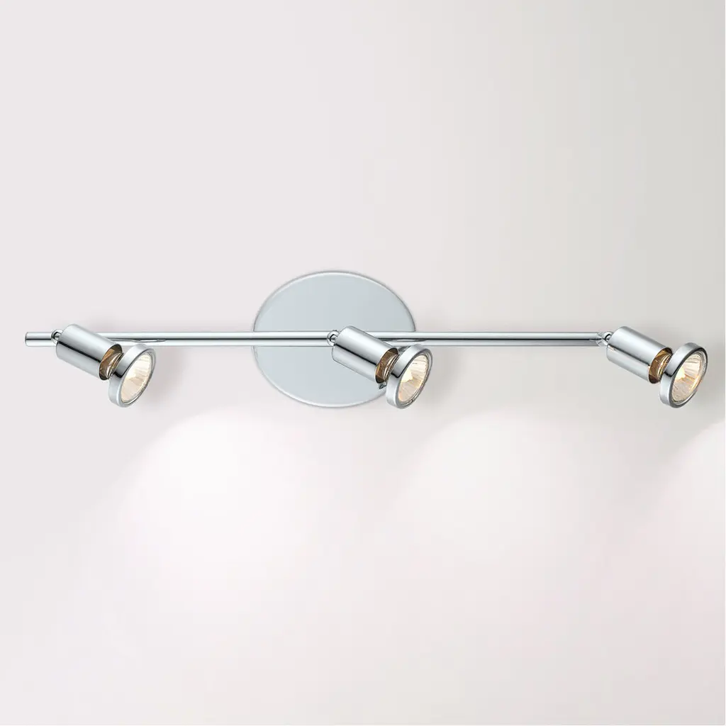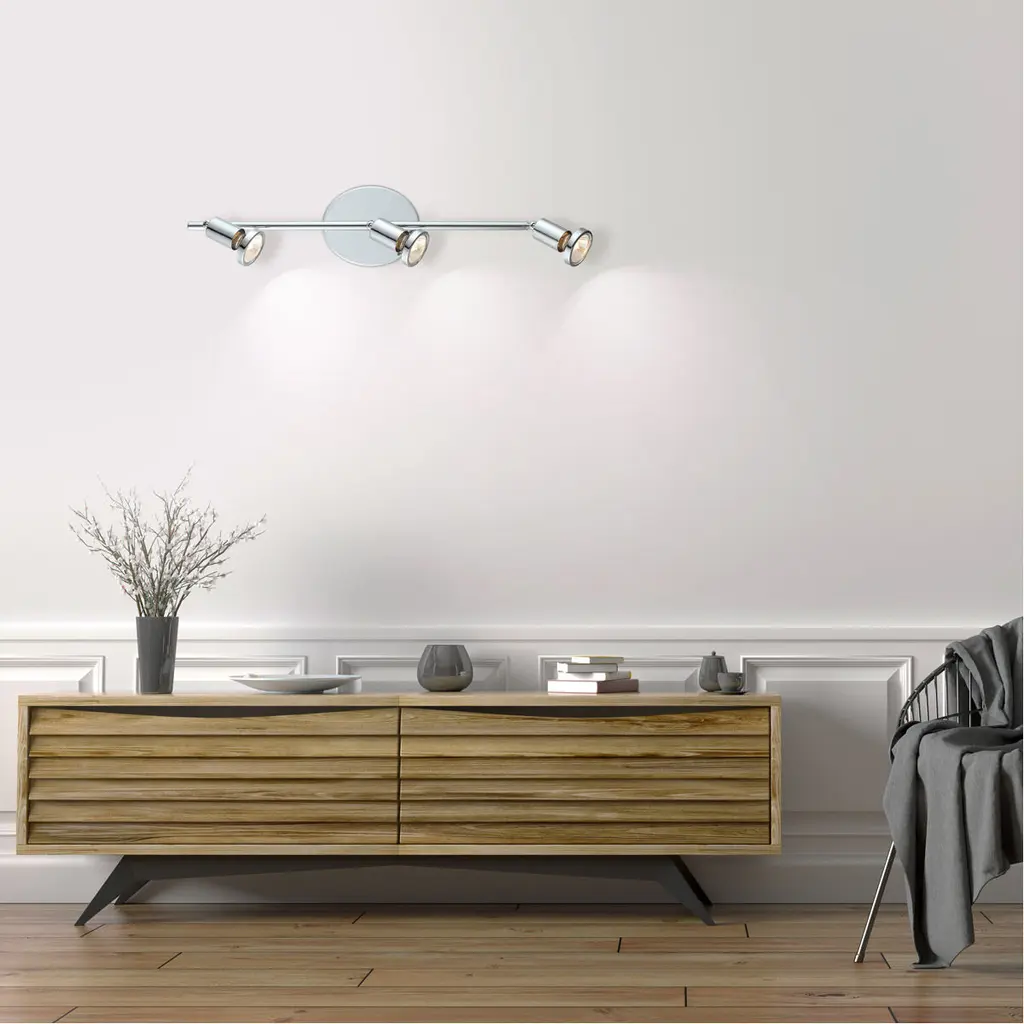 The Eglo Buzz 2, 3 light track light, uses simple, stylish design to function as a sharp contemporary or transitional fixture. With adjustable halogen lights and clean chrome finish, this fixture will accent your modern decor. These multifunctional lights work great as directional accent lighting and task lighting.
