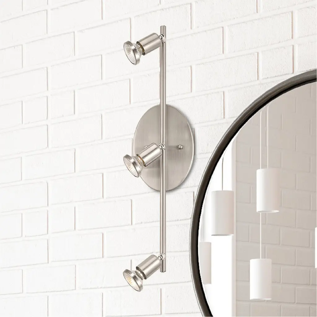 The Eglo Buzz three light track light uses simple, stylish design to function as a sharp contemporary or transitional fixture. With adjustable halogen lights and a clean matte nickel finish, the fixture will accent your modern decor. The multifunctional lights work great as directional accent lighting and task lighting.