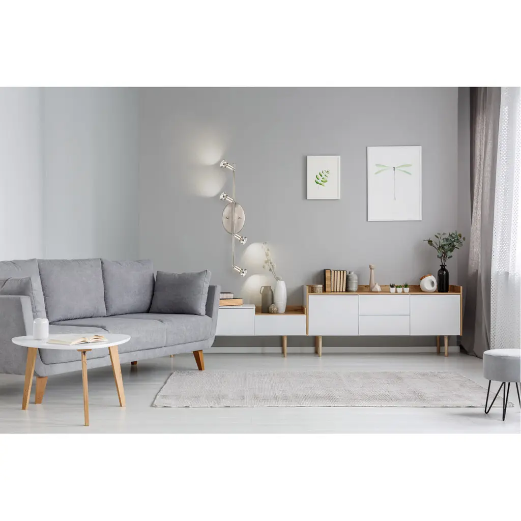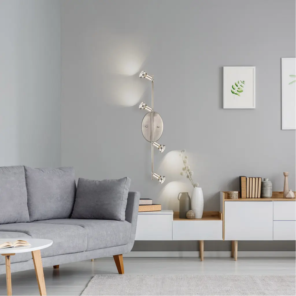 The Eglo Buzz four light track light uses simple, stylish design to function as a sharp contemporary or transitional fixture. With adjustable halogen lights and a clean matte nickel finish, the fixture will accent your modern decor. The multifunctional lights work great as directional accent lighting and task lighting.