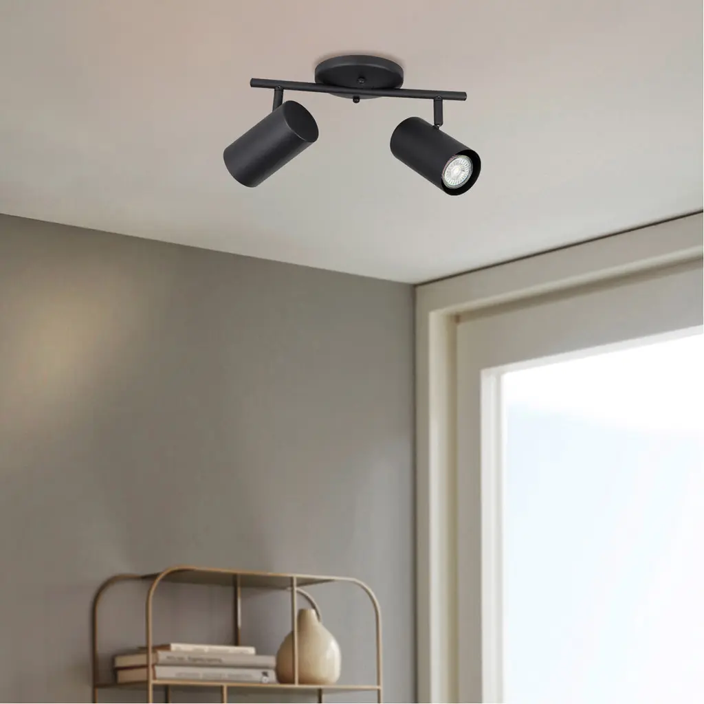 Calloway 2 Lt Fixed Track Light Structured Black Finish, Metal Cylinder Shades 10W