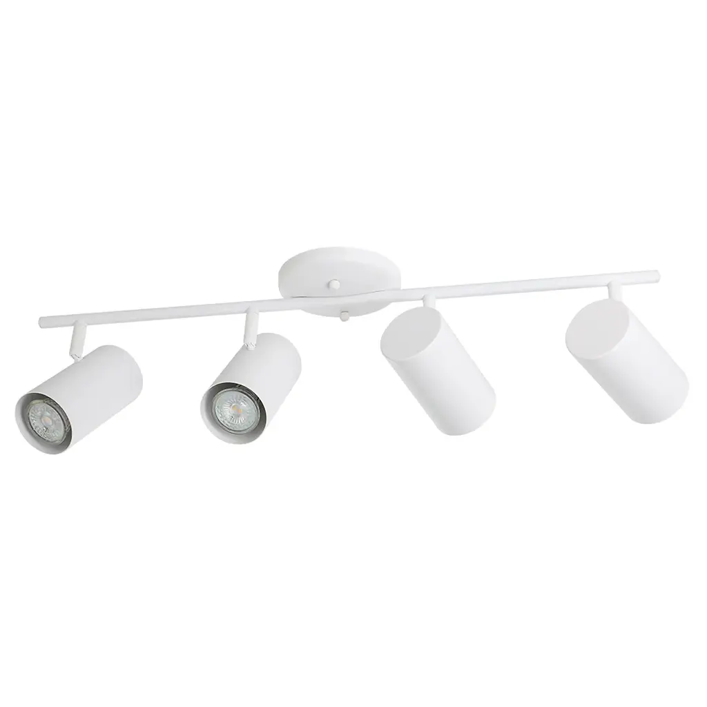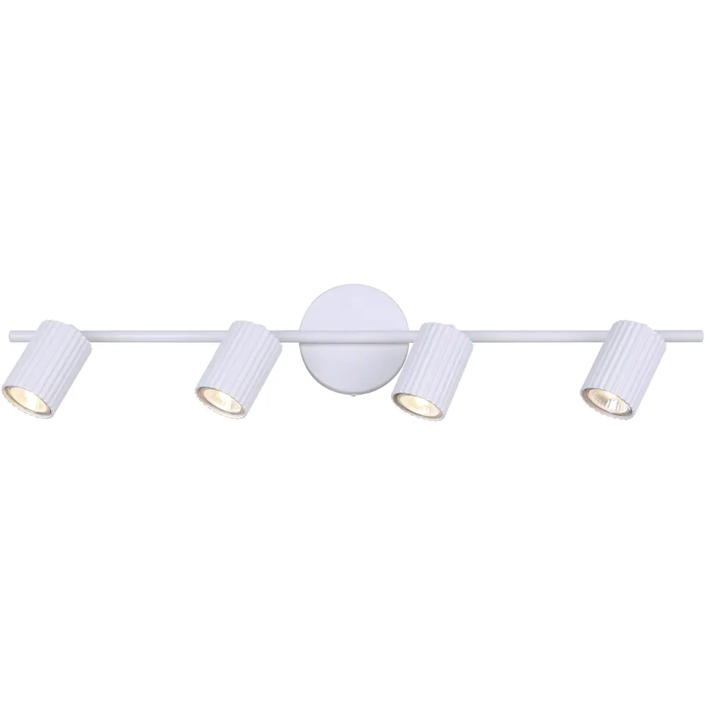 Available in 2, 3, or 4-Light Options Adjustable Lamp Heads Can be mounted on wall or ceiling Material: Steel Dimensions: 2-Light: 12.01 inches long x 5.65 inch extension x 5.65 inches wide x 4.72 inches high 3-Light: 20.47 inches long x 5.65 inch extension x 5.65 inches wide x 4.72 inches high 4-Light: 25.2 inches long x 5.65 inch extension x 5.65 inches wide x 4.72 inches high Maximum Height: 4.72 inches Weight: 2-Light: 2.41 pounds 3-Light: 2.09 pounds 4-Light: 2.65 pounds Slope Ceiling Capable: No Install Orientation: Vertical/Horizontal System Type: Hardwired Bulb Shape: MR16 Socket Type: LED GU10/Bi-Pin Lamp Type: LED Bulb Included?: No Voltage: 120 Fixture Dimmable: No