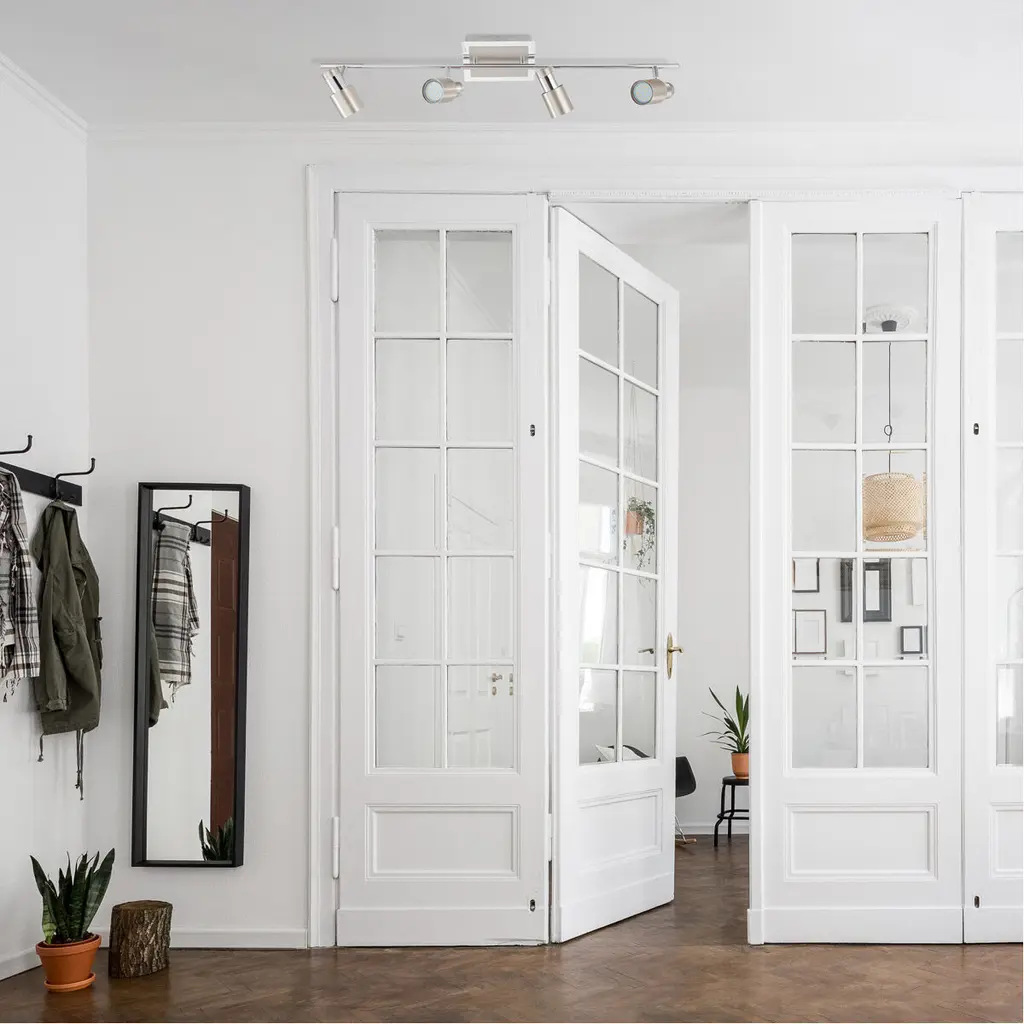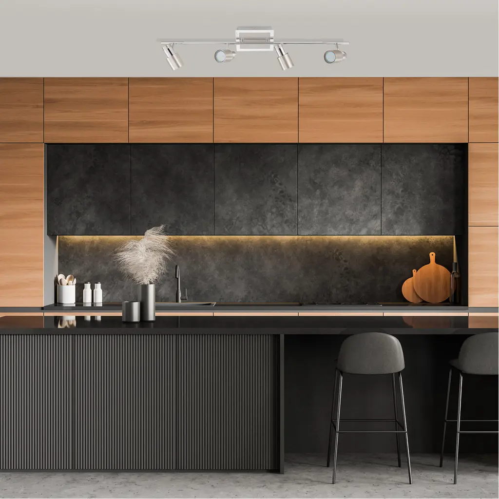 Brighten up any room with Eglo's Davida-2 track light! It boasts 4 track heads in a matte nickel finish and chrome accent. Applicable indoors, this contemporary track light is energy efficient and suitable for many settings. Perfect for the hallway, bedroom, basement and kitchen, it's a purchase you won't regret!