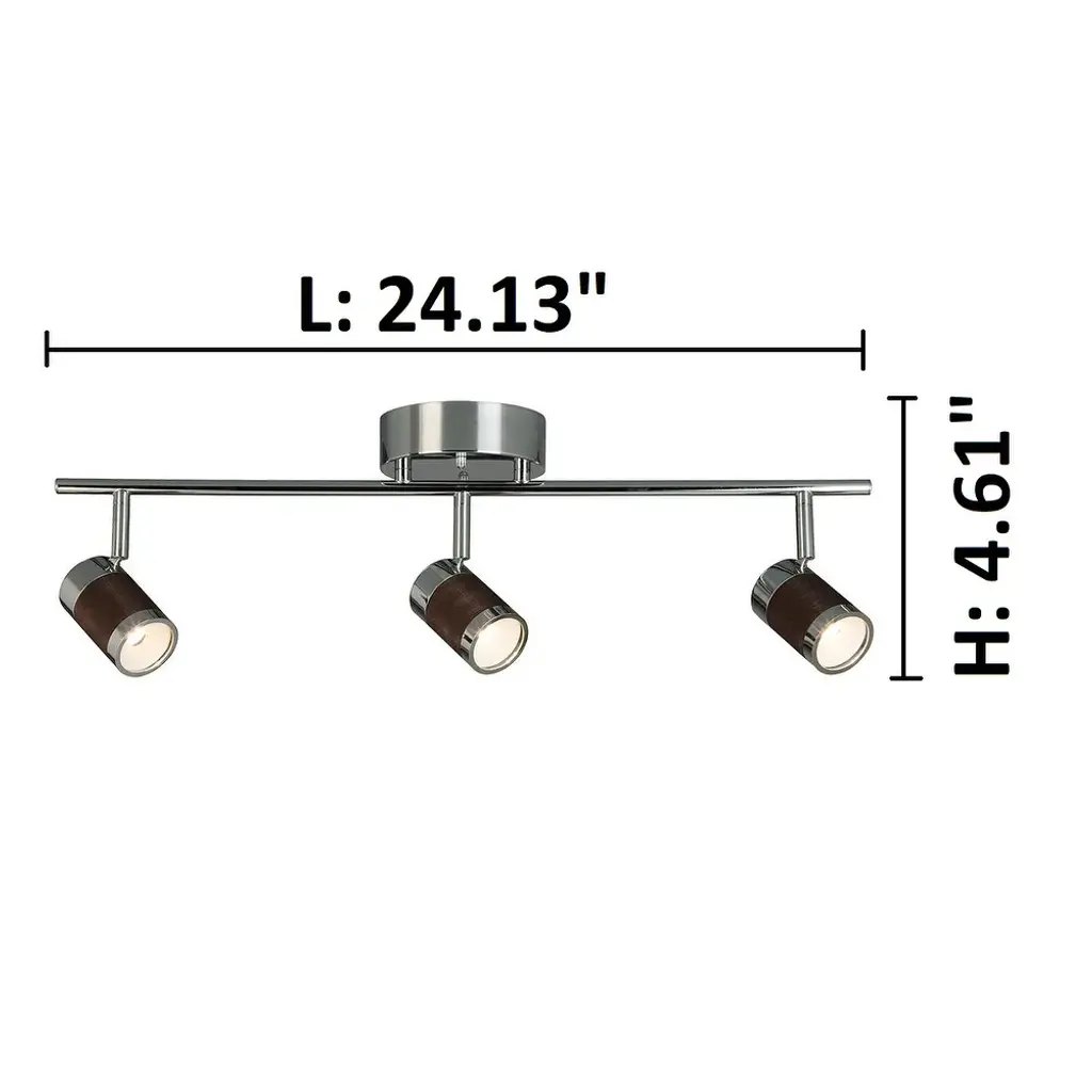 The Eglo Brews three light track light uses simple, stylish design to function as a sharp contemporary or transitional fixture. With adjustable Integrated LED lights and a clean Chrome finish, the fixture will accent your modern decor. The multifunctional lights work great as directional accent lighting and task lighting.Adjustable lamp headsMounting hardware includedMultiple light directionDimmableFrame finish: ChromeFrame material: SteelShade color: CopperShade material: MetalVoltage: 120DimmableLumens: 1200, CRI: 90, LED Color: 3000 - Warm White, LED Life: 50000Requires three (3) 6-watt E12 Candelabra Incandescent base bulb(s) (included)Canopy dimensions: 4.25 inches wide x 1.81 inches thickShade dimensions: 2 inches high x 1.76 inches wideDimensions: 4.61 inches high x 24.13 inches wide x 1.25 inches deep