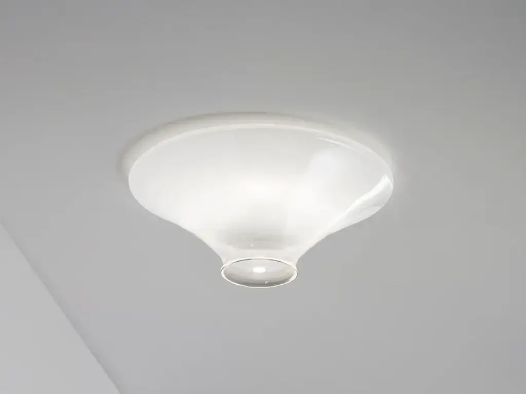 Idda is a Spotlight with blown glass in gold, white or titanium shaded finish. FINISHES:Gold shaded, Titanium shaded, White shadedLED BULB: 1 x 6w - GU10A> A++IP20INDOORAVAILABLE WITH LED INTEGRATED VERSION 3000K CRI >80A++ON REQUEST DIMMABLE WITH: TRIACCERTIFICATION: CE/EACWEIGHT: 1 KGIdda (design by Danilo De Rossi) is a spotlight whose silhouette is inspired by the crater of a volcano, from which hot jets of light come out. Made of decorative glass with a metallic shade, Idda is available in white, gold and titanium.