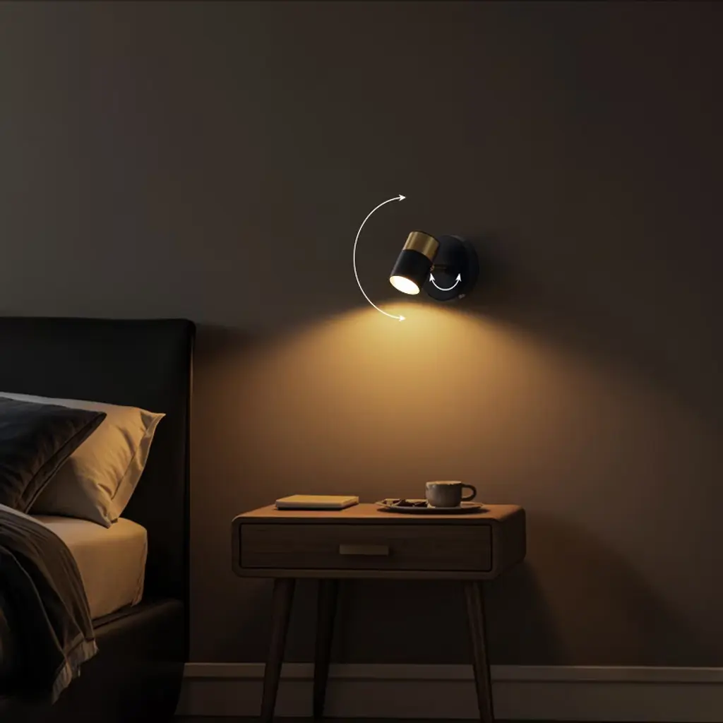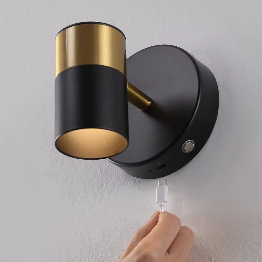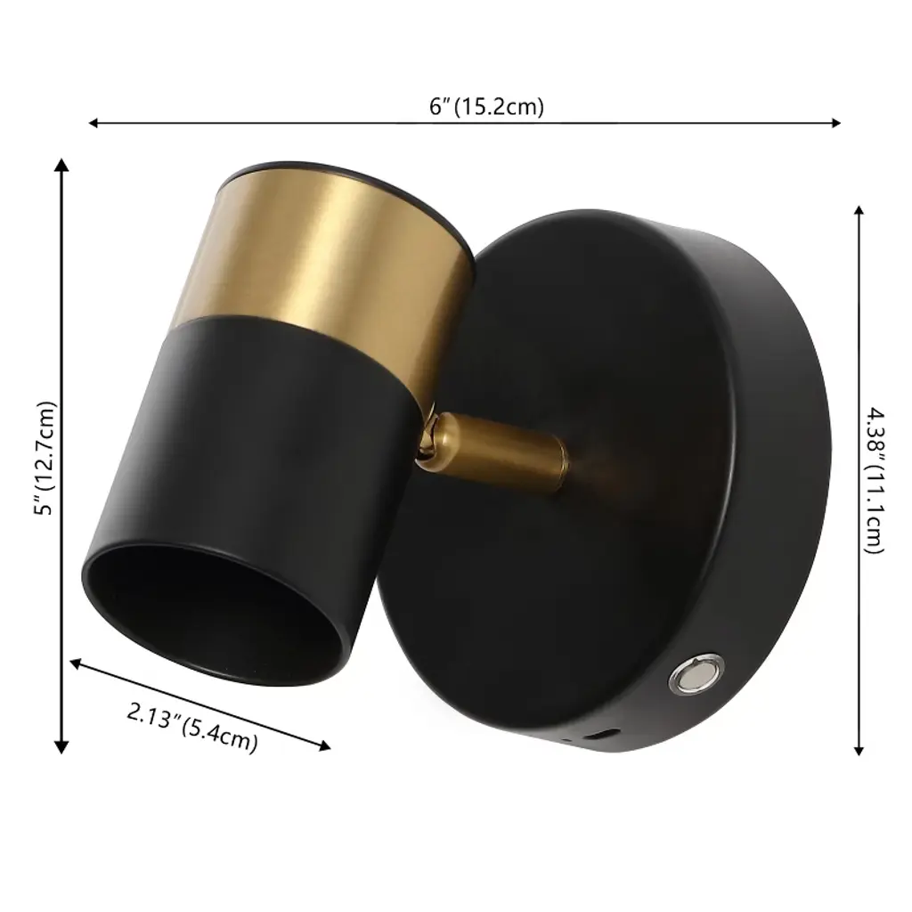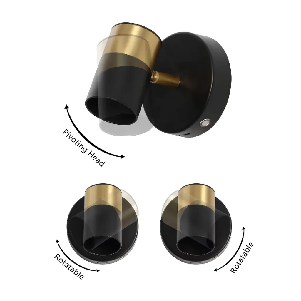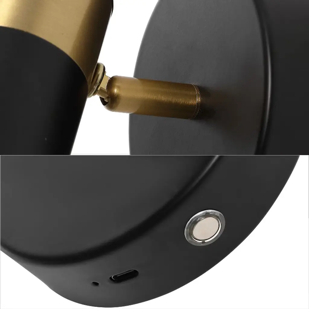 Jonathan Y Paola 6" 1-light Modern Adjustable Head Integrated Dimmable Led Rechargeable Wall Spotlight With Touch Sensor, Black/brass Gold
