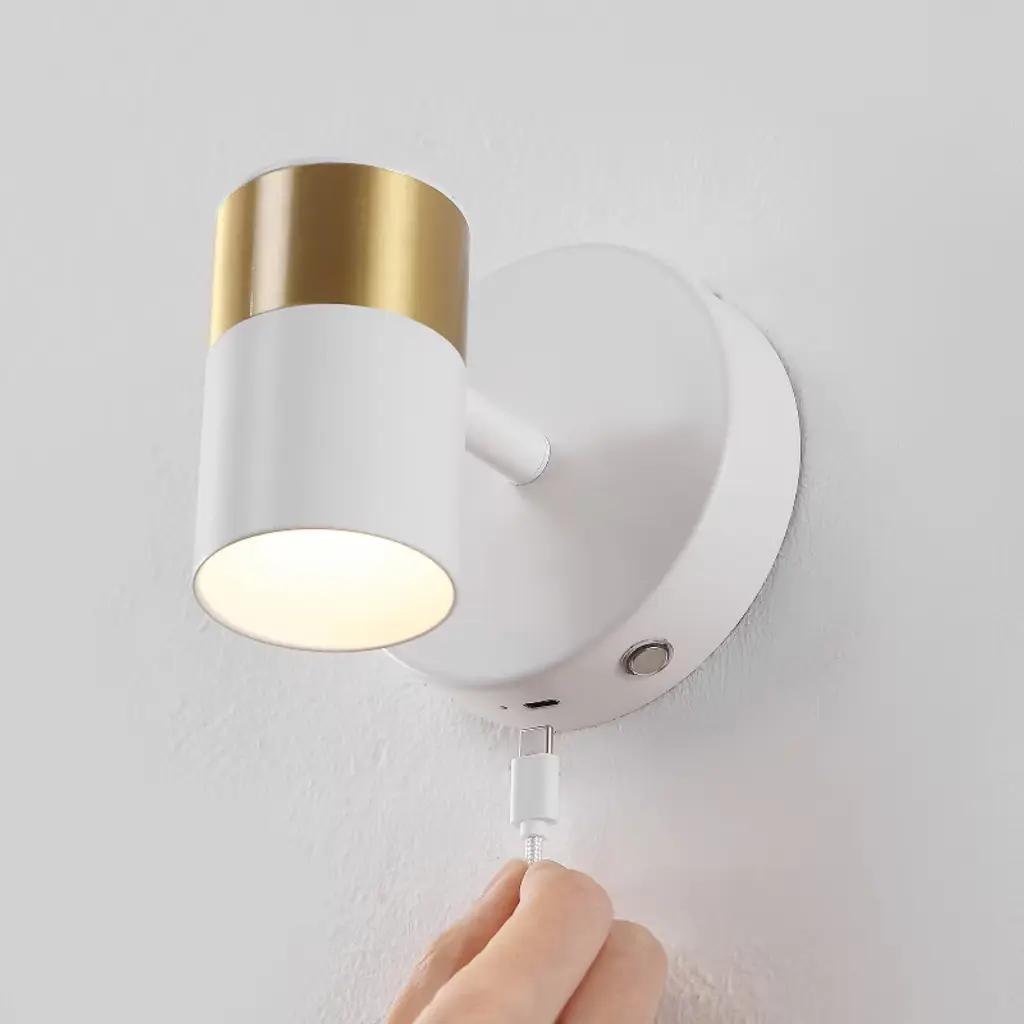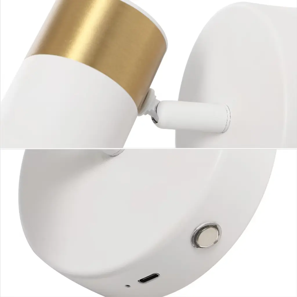 Jonathan Y Paola 6" 1-light Modern Adjustable Head Integrated Dimmable Led Rechargeable Wall Spotlight With Touch Sensor, White/brass Gold