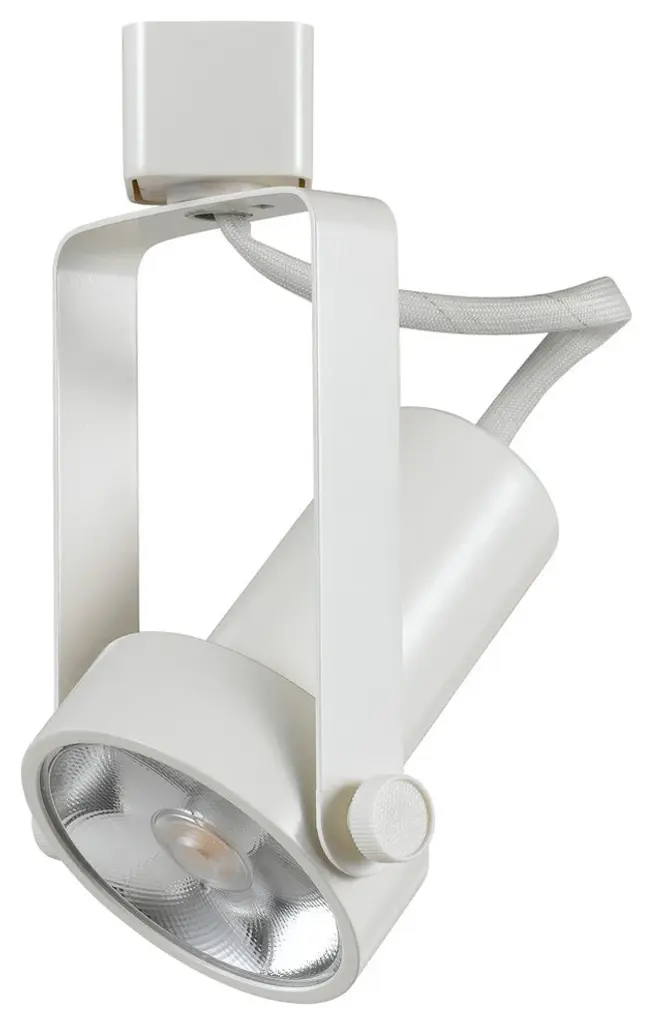 The MAY LED H-Style Track Head from Nora Lighting presents a lasting and elegant appeal to spaces. A tough fixture in die-cast aluminum, it descends from a cube-shaped track head, using a metal yoke to support a die-cast aluminum cylinder around strong LED lamping. A glass diffuser and beveled edge to the housing mellow and distribute direct light around the fixture, softening bright glare into a warm, wide-reaching glow.