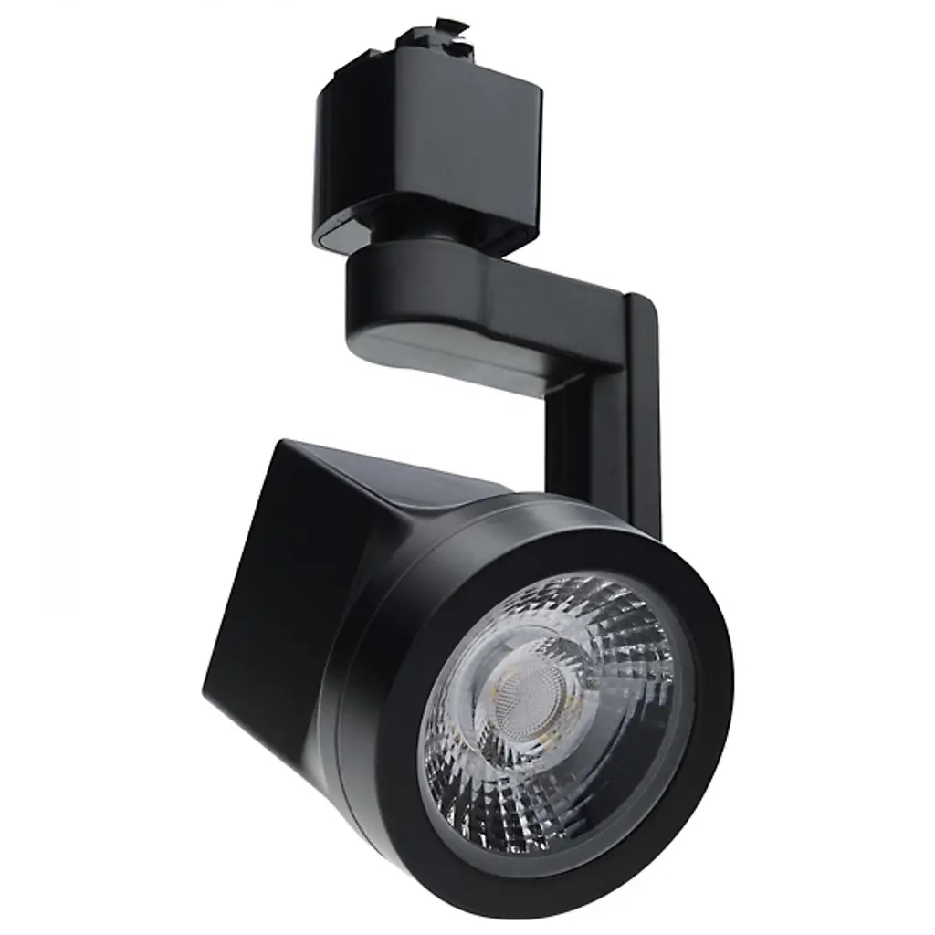 The MAY LED H-Style Track Head from Nora Lighting presents a lasting and elegant appeal to spaces. A tough fixture in die-cast aluminum, it descends from a cube-shaped track head, using a metal yoke to support a die-cast aluminum cylinder around strong LED lamping. A glass diffuser and beveled edge to the housing mellow and distribute direct light around the fixture, softening bright glare into a warm, wide-reaching glow.