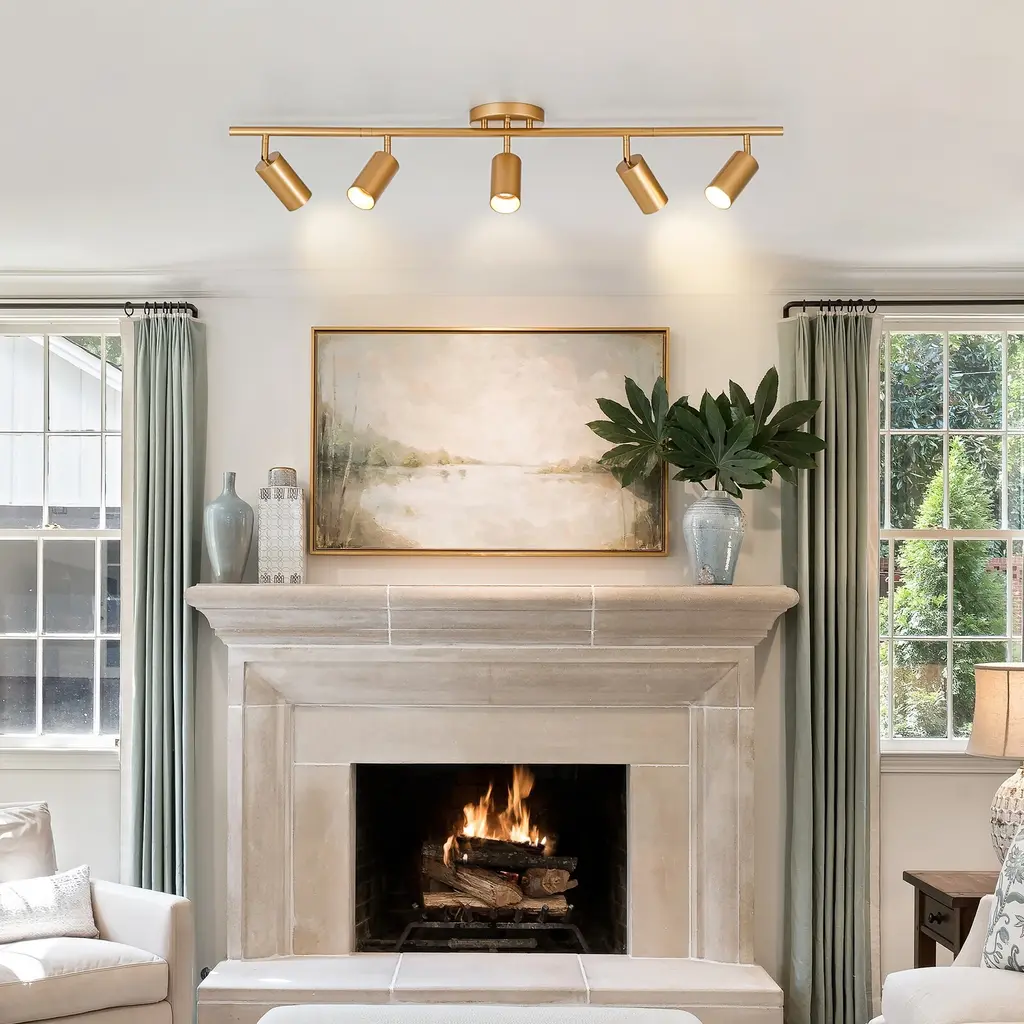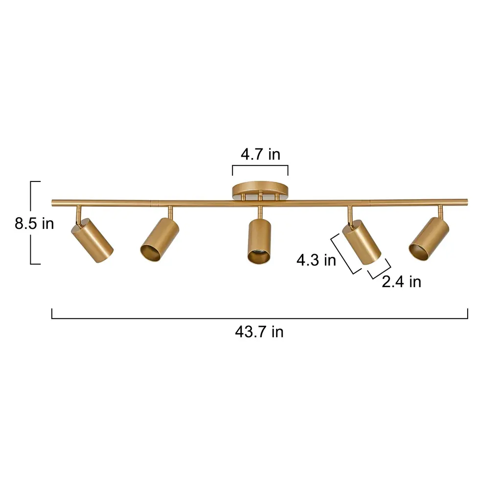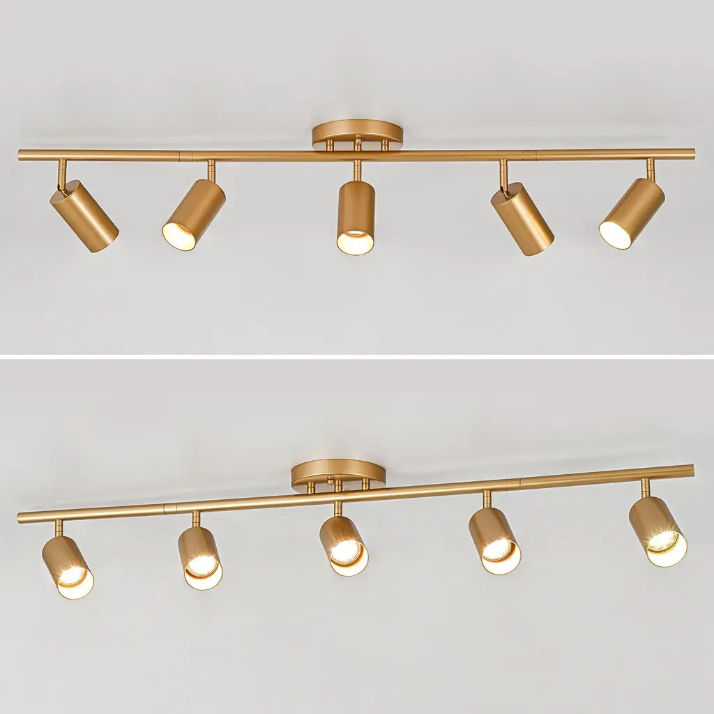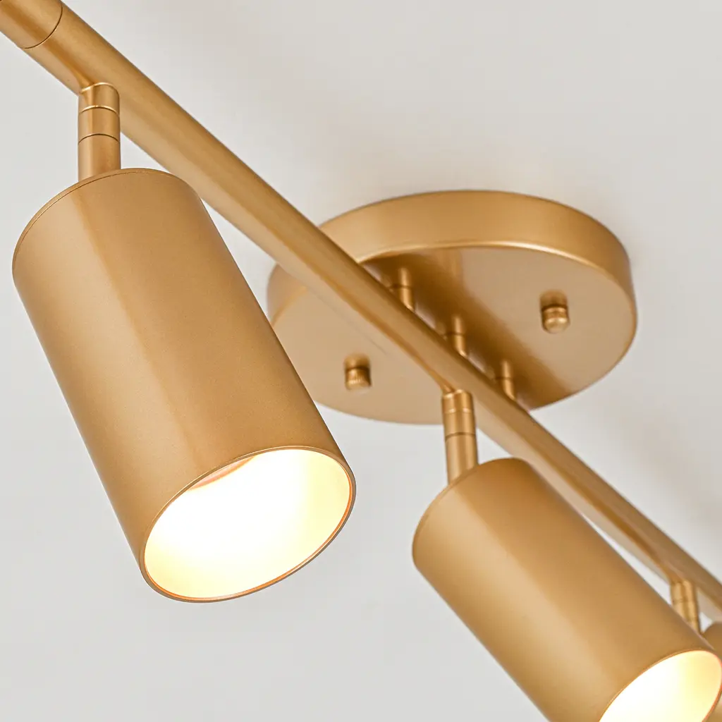 This linear track flush mount lighting has 4 cylindrical lights with gold finishes, giving it a luxurious feel. Each light can be individually adjusted 350 degree horizontally and 90 degree vertically so that you can point the light exactly where you need it. It is suitable for installation in kitchens, islands, dining rooms, living rooms, bars or areas with high ceilings. Features:Dimensions: