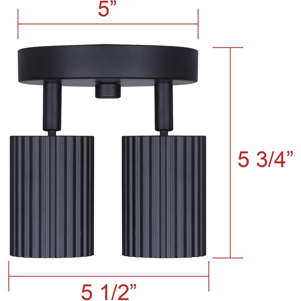 Meet REXTON, a versatile 2-light ceiling or wall fixture designed to elevate your living space. Finished in sleek Matte Black color, REXTON blends seamlessly with any decor style. Each light accommodates a 50W Type GU10 bulb, offering bright and focused illumination. With dimensions of 5.5 inches in width, 5.75 inches in height, and 5 inches in depth, REXTON offers a compact yet stylish lighting solution for your ceiling or wall.