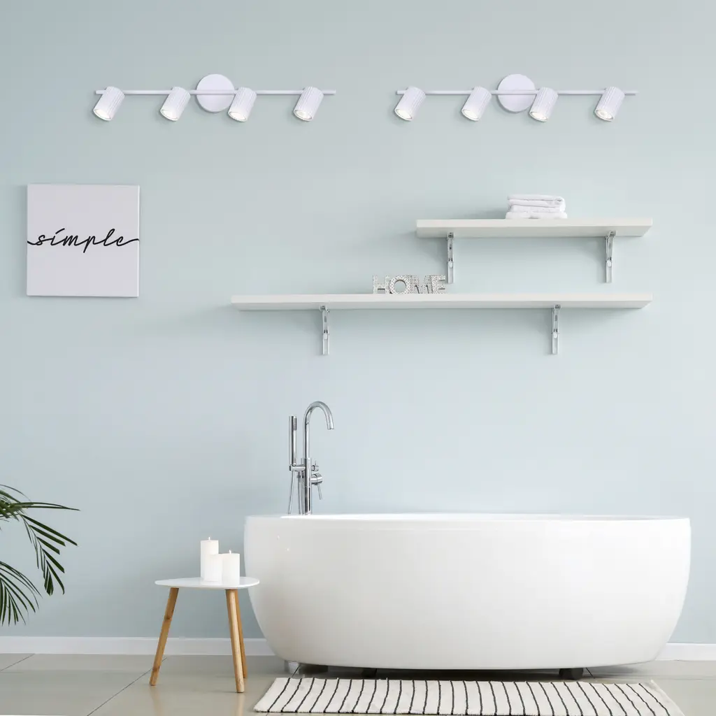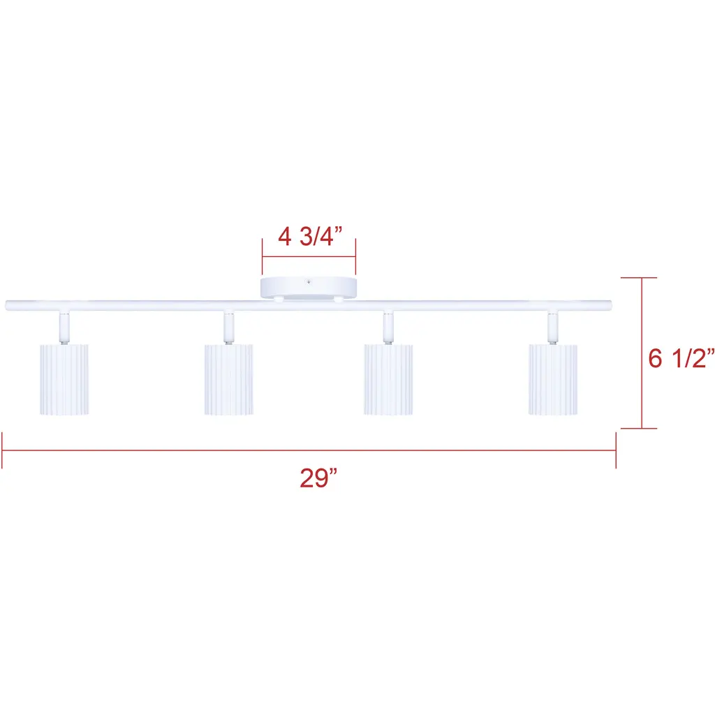 The REXTON 4-light track fixture offers versatility and functionality with its Matte White color finish. Featuring a sleek design, this track light is perfect for illuminating various spaces in your home or office. It comes with four GU10 sockets, compatible with 50W Type GU10 bulbs, providing ample brightness for any room. The dimensions of the fixture are 29 inches in width, 6.5 inches in height, and 4.75 inches in depth. Easy Connect Included ensures hassle-free installation, allowing you to enjoy your lighting setup in no time.