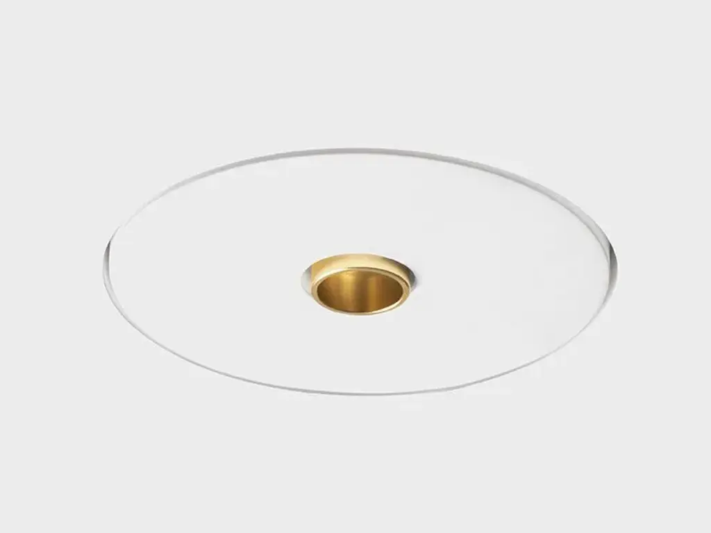 Rhodia is a recessed plaster spotlight with aluminum ring. Available in black, white, brushed brass or brushed copper. Light point diameter 20 mm with integrated LED module and on-board power supply. The spotlight, which can be installed in plasterboard, once trimmed, becomes a single part of the structure.