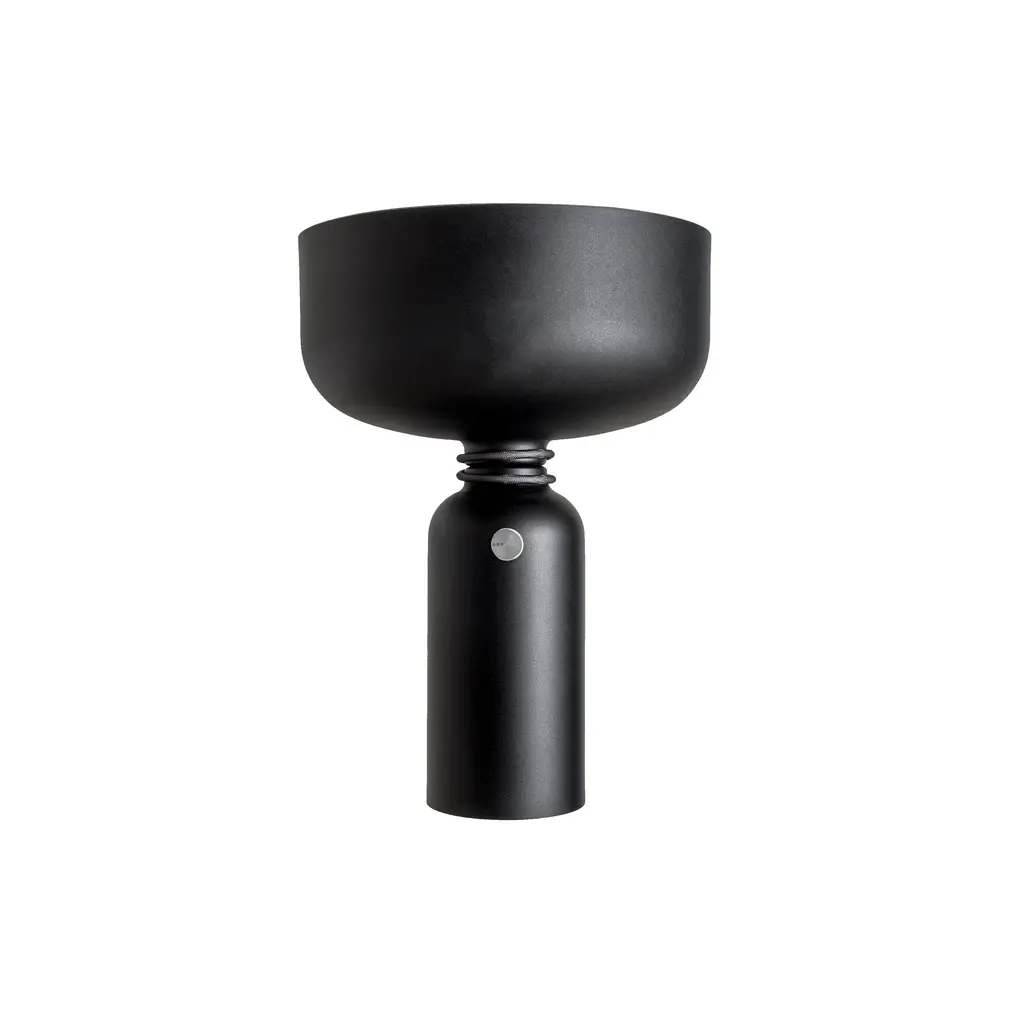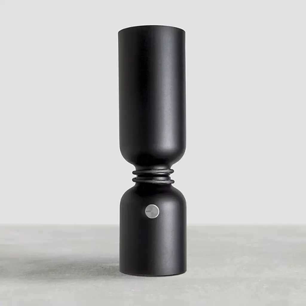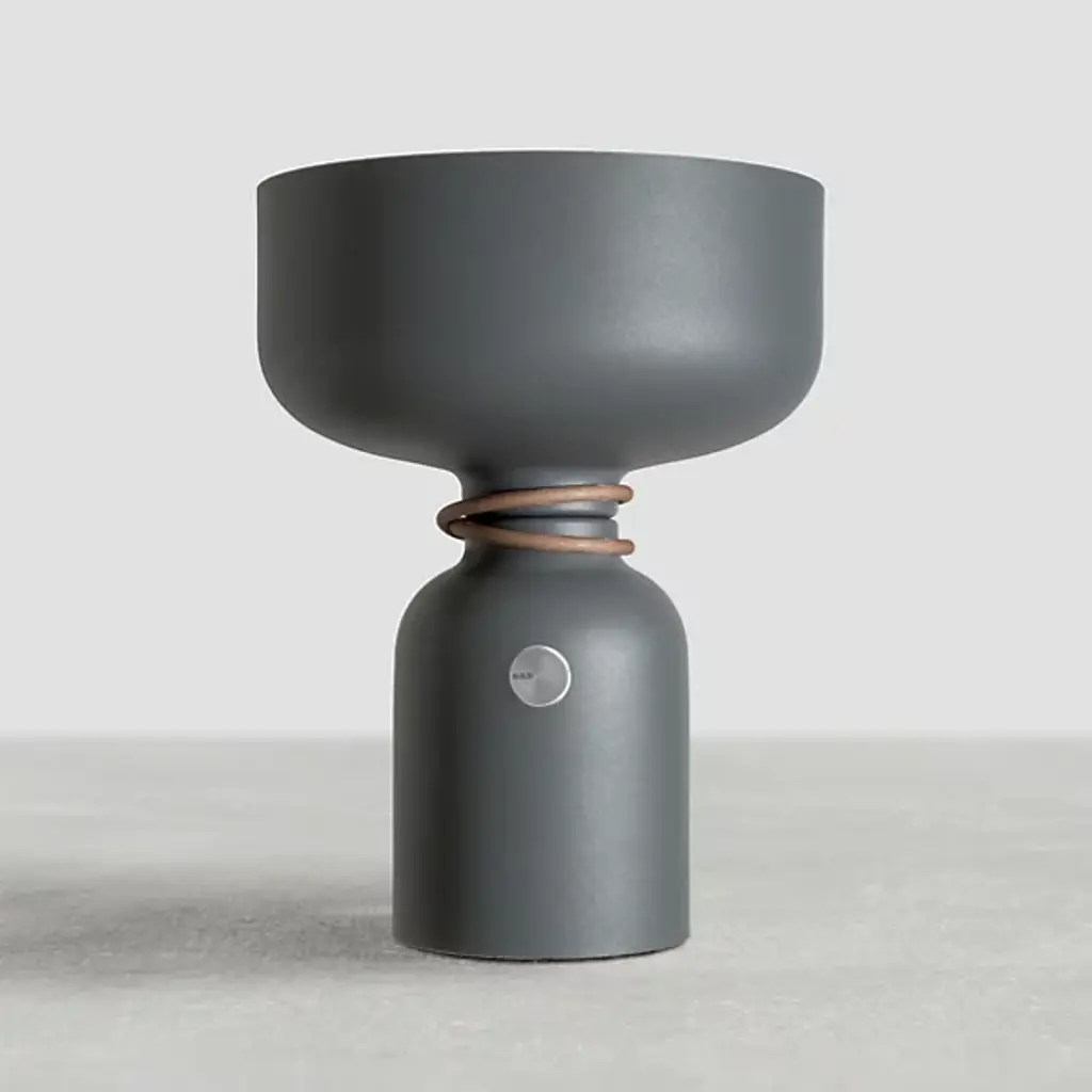 Lukas Peet adapts Spotlight Volumes as a customizable table lamp with up to 16 different configurations that feature 4 different shade silhouettes paired in timelessly modern style. Additionally, the electrical cord wraps around the unit and becomes a design feature unto itself. In spun aluminum, the shade is finished in a textured matte powder-coat hue or a rich anodized black.